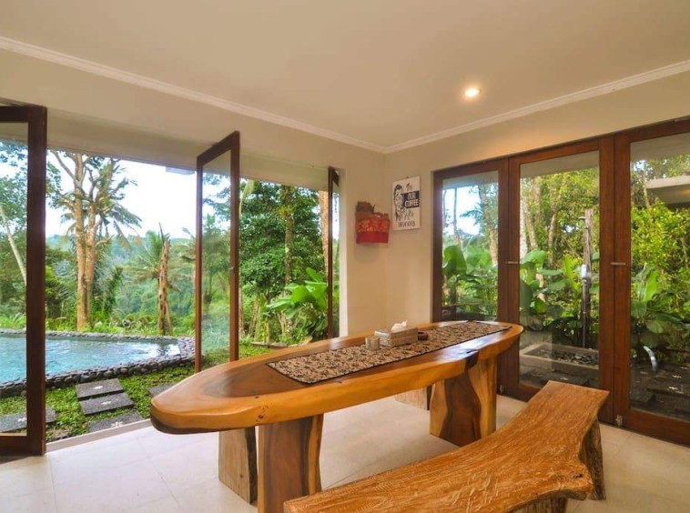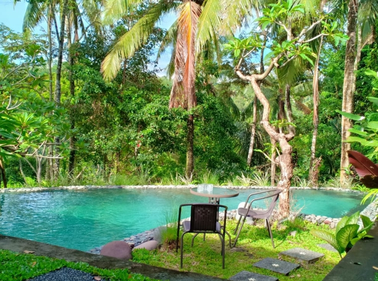 An eco built, comprises of two en-suite bedrooms peacefully embedded into the tropical garden and an infinity pool overlooking the ravine.