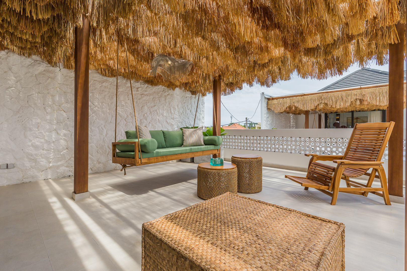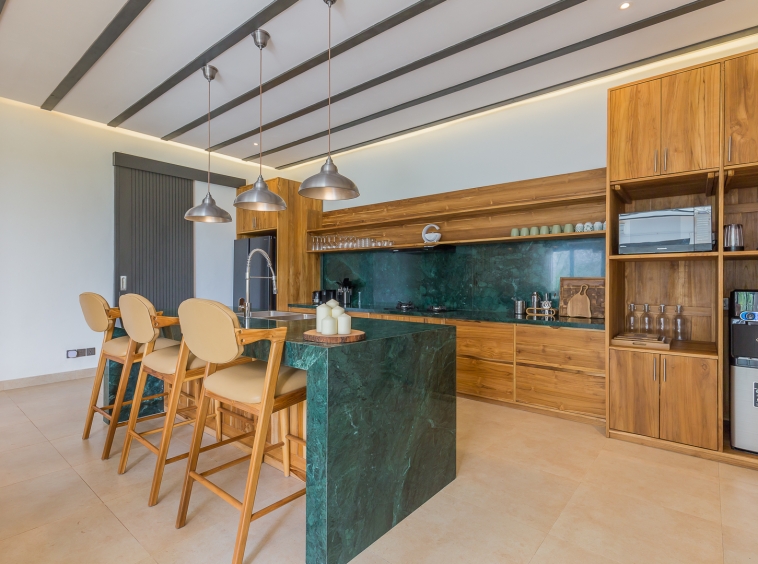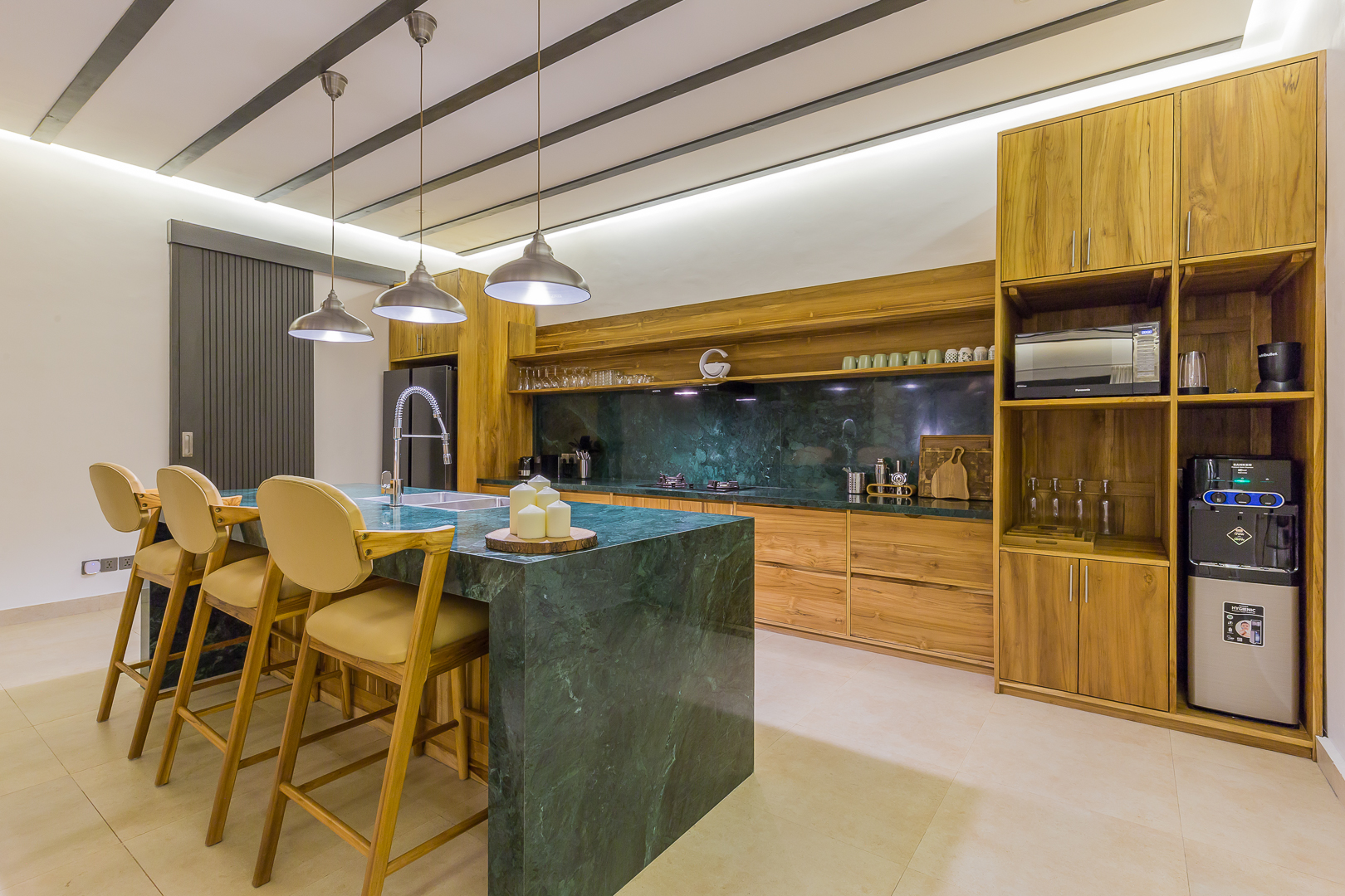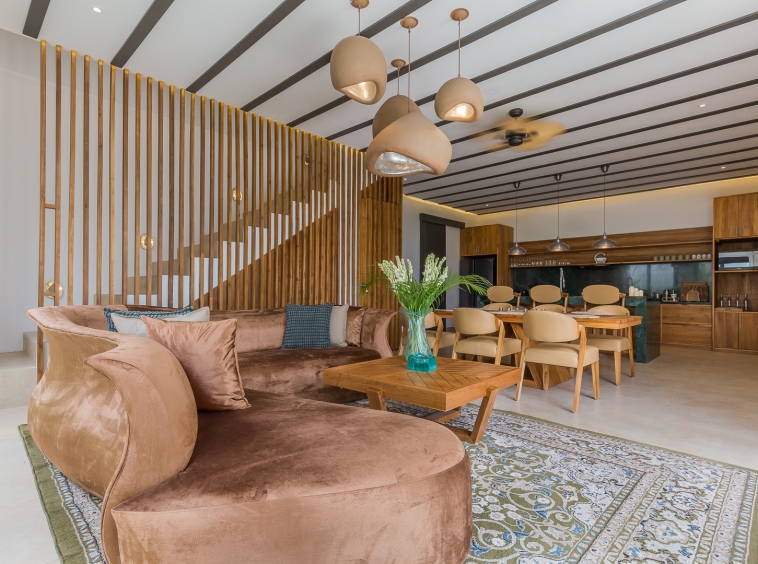 The top floor features 1 master bedroom with a master bathroom, an expansive gathering space with a large semi-circular seating set, a bar island, and another TV set, as well as a capacious rooftop section to view the green surroundings while enjoying the soft breezes that is typical of the village. This villa is fully furnished and is provided with complete amenities. In addition, it also provides private parking space that is suitable for a car and a few bikes.