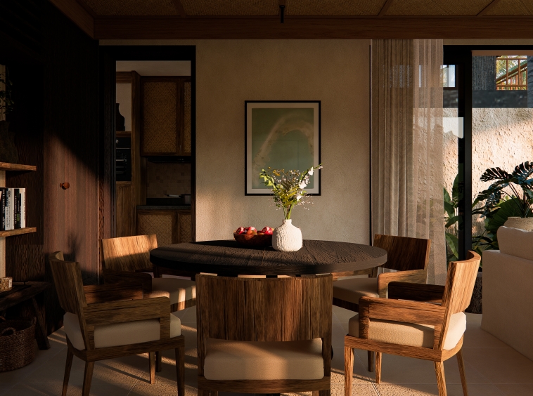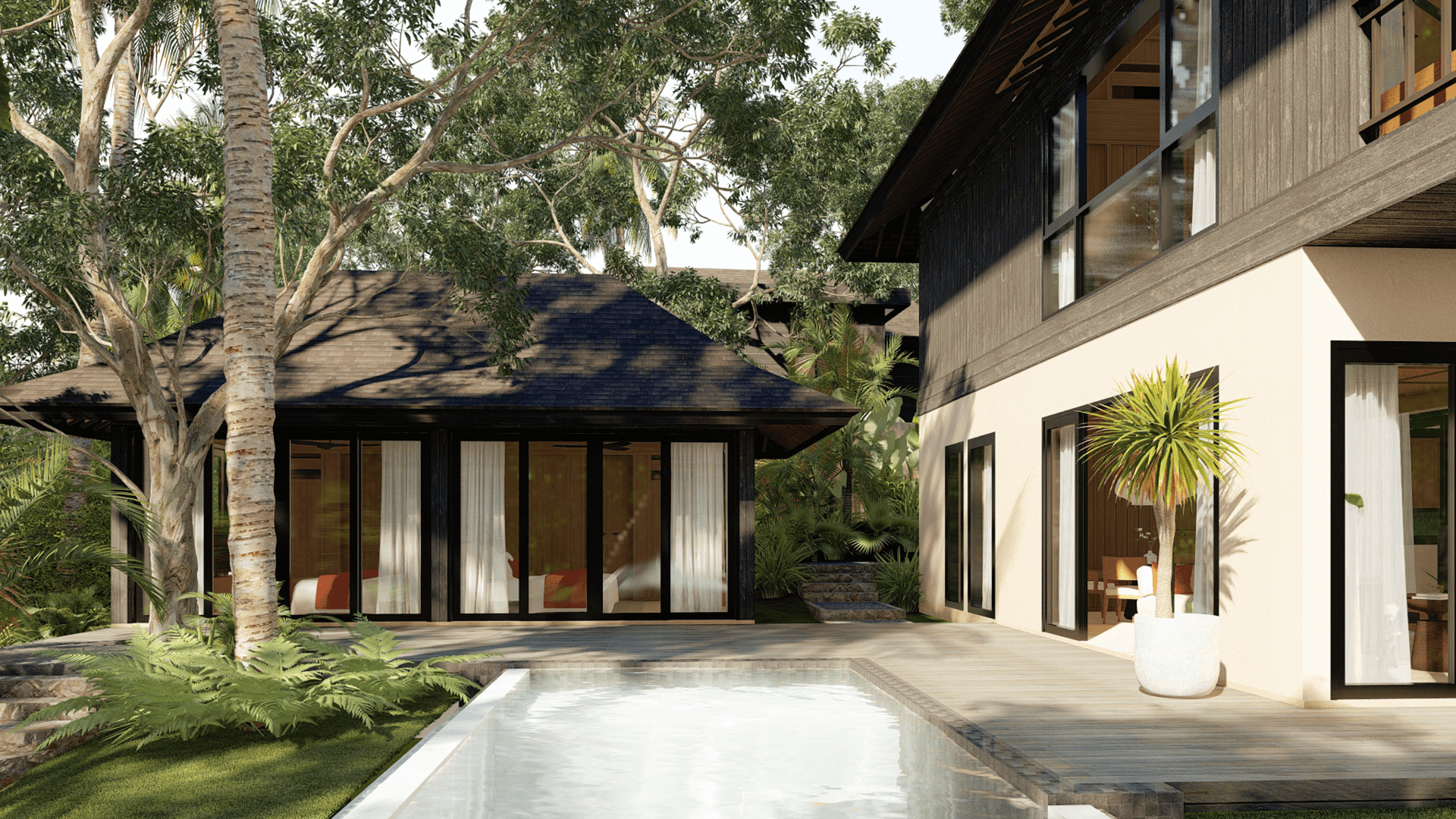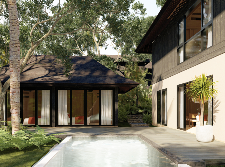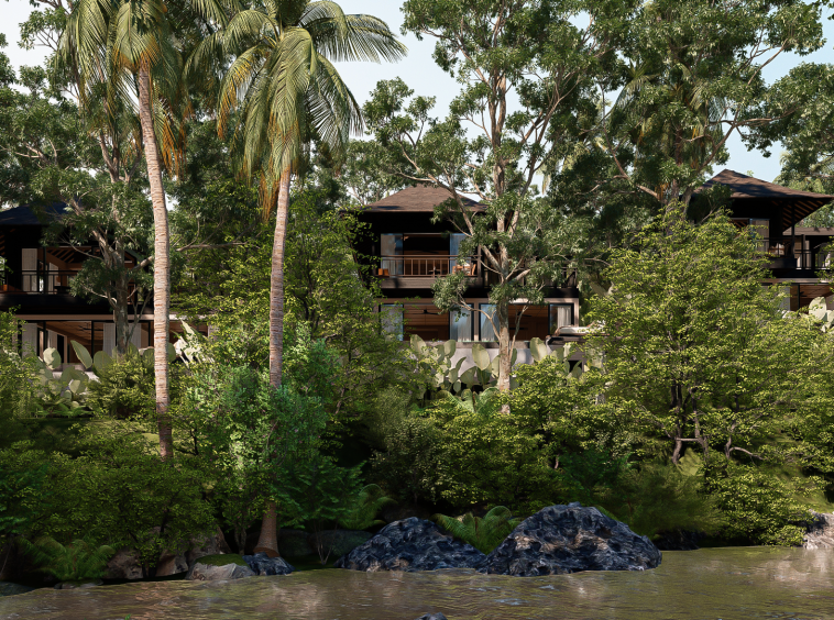 The outdoor section features a large private swimming pool, extensive tropical garden, a terrace, a generous pool deck, and an outdoor seating area – every section offers unparalleled and soothing views of the river and lush jungle. As part of an exclusive villa compound, each villa provides several common amenities such as 2 vast parking spaces, full-time security service, a viewing area, and a private beach-sand river section.