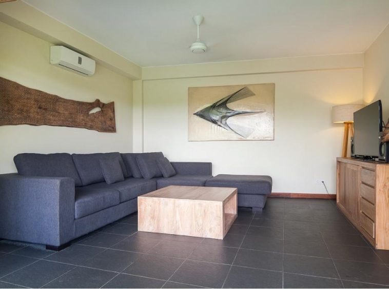 The living room area is bright and spacious, with large windows that let in plenty of natural light and provide you with a stunning view of your private garden and swimming pool. You can relax and unwind in this comfortable space, which is perfect for hosting guests or spending quality time with your family.