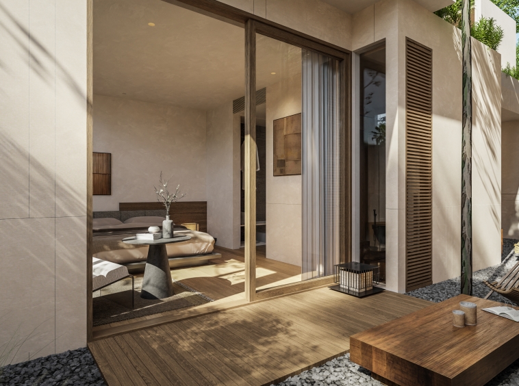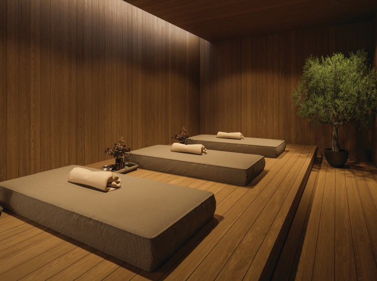 As part of a wellness-themed living compound, it also provides additional common facilities such as fully purified water, a wellness center that covers a gym, an exercise studio, a massage room, a cold plunge, a sauna room, a common swimming pool, a sundeck area, and a yoga deck, and a surrounding eucalyptus forest with dedicated paths for walking and jogging – thoughtfully designed to create an echo-friendly environment.