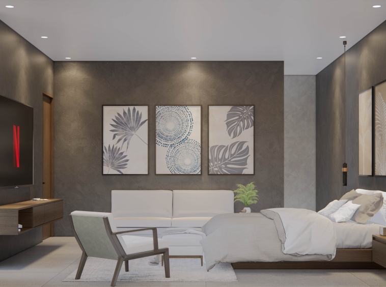 This luxury villa was built on 229 m2 of land and has 2 floors. The ground floor’s interior features a master bedroom and an ensuite bathroom. A cozy living area is situated here with a spacious dining area that is combined with a fine kitchen, a laundry room, and a common bathroom. The exterior section of this floor features a large outdoor dining space that is attached to the sundeck area. A beautiful swimming pool and a lush verdant garden are placed on the right side of the entrance, making this floor an idyllic area to spend time with family or dearest friends.