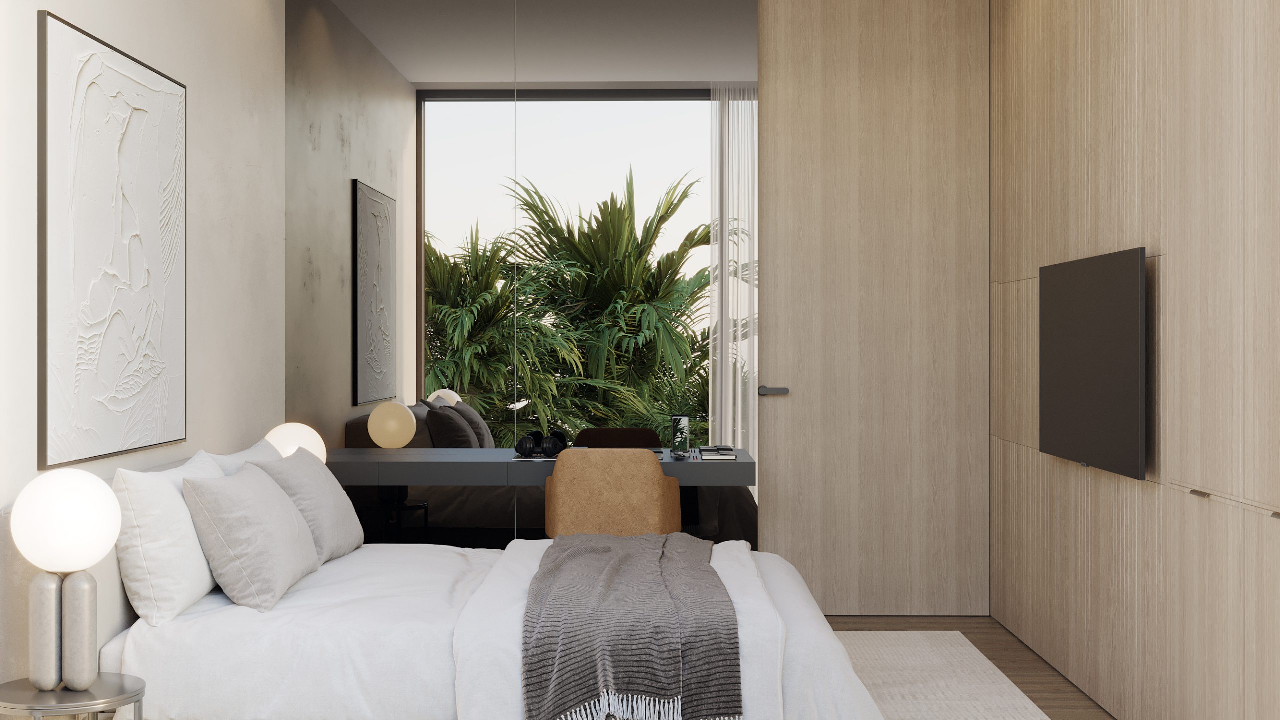 Located in Pererenan within walking distance to the beach, this off-Plan modern 2 bedroom apartment, perfectly sits next to a small river with a tropical view from the apartment, its a 95sqm apartment with a community pool.