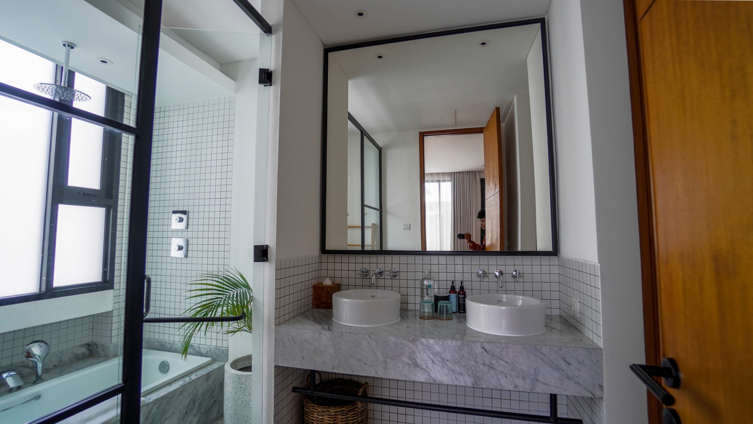 Venture upstairs to discover the master bedroom, featuring an ensuite bathroom, a wardrobe for all your storage needs, a rejuvenating bathtub, and a private balcony. Additionally, the other two bedrooms offer a conducive environment with working desks, catering to those who desire a dedicated workspace.