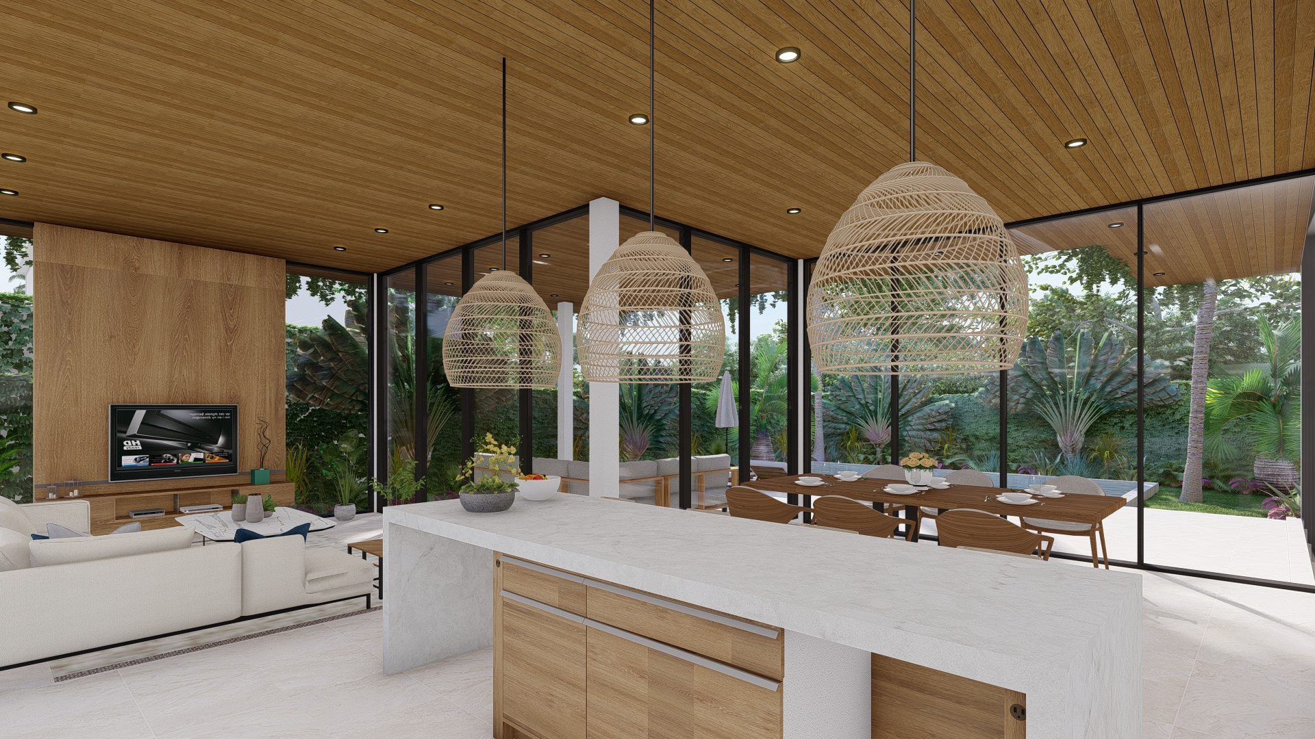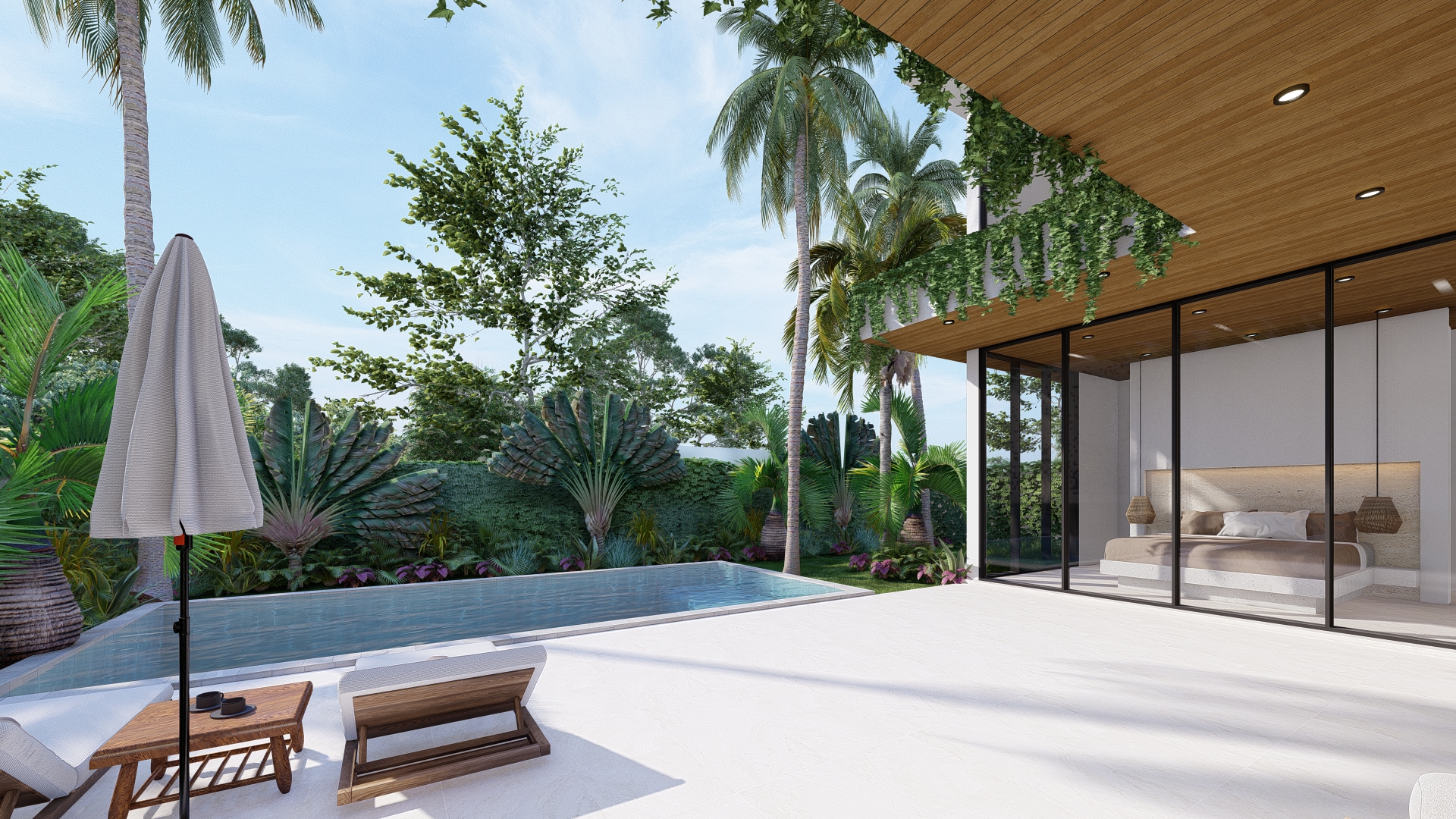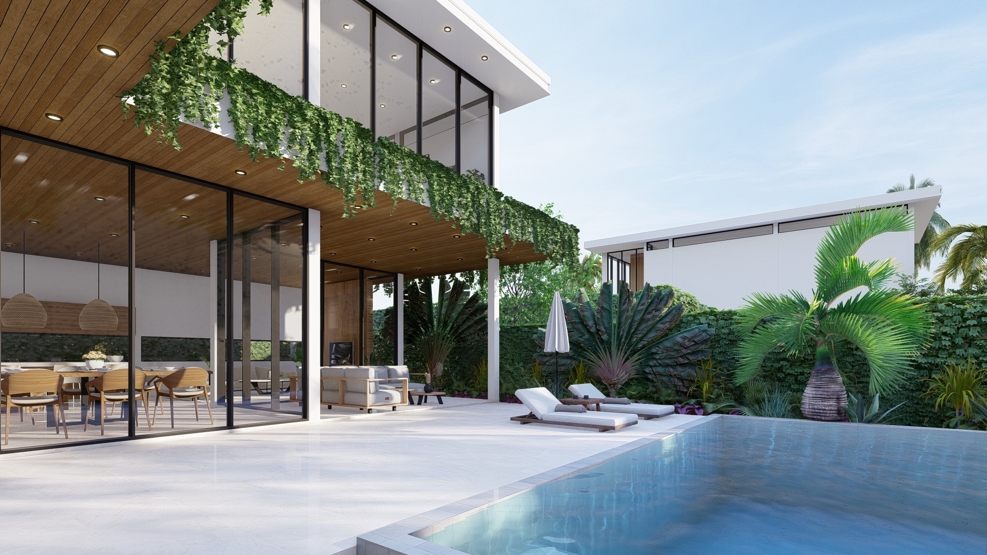 With its spacious and thoughtfully designed layout, this villa is the ultimate in tropical living. The villa features 4 bedrooms, or 3 bedrooms and an office, and 4 bathrooms, ensuring that you and your guests have plenty of space to relax and unwind. The villa also includes an 8.5 x 4 swimming pool and an open space, creating the perfect atmosphere for outdoor living and entertainment.
