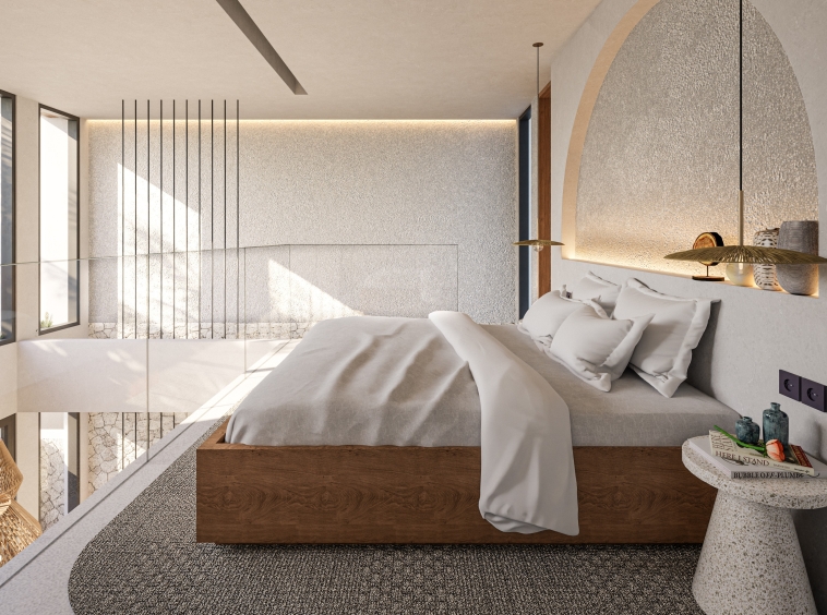 Built on 56,5-70 sqm of land with a 70 sqm of living space, this beautiful villa embodies pure elegance through its thoughtfully designed two-level layout. The interior features a well-appointed bedroom with an ensuite bathroom and a walk-in closet, an ample living room, a modern kitchen, a dining space, and a powder room. On the outside, there is a private swimming pool with a generous pool deck and several sun beds – a perfect spot for lounging with spectacular views.