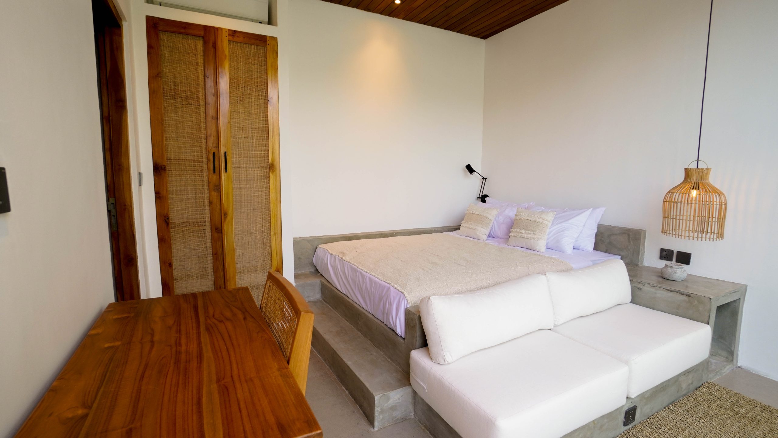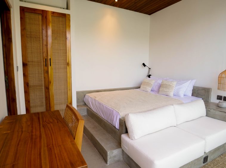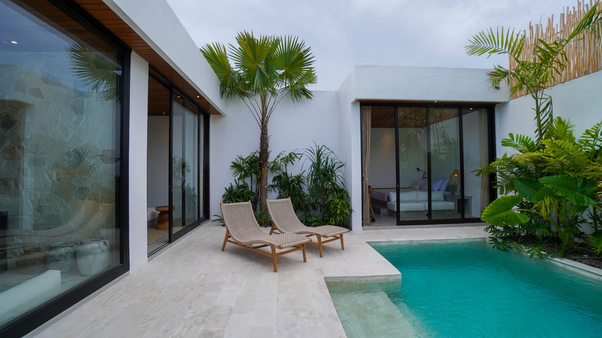 This villa features two bedrooms, both elegantly designed with your comfort in mind. The master bedroom comes with a luxurious bathtub and double vanity, making it the perfect place to unwind after a long day. The second bedroom is equally impressive, with its own ensuite bathroom and comfortable furnishings.