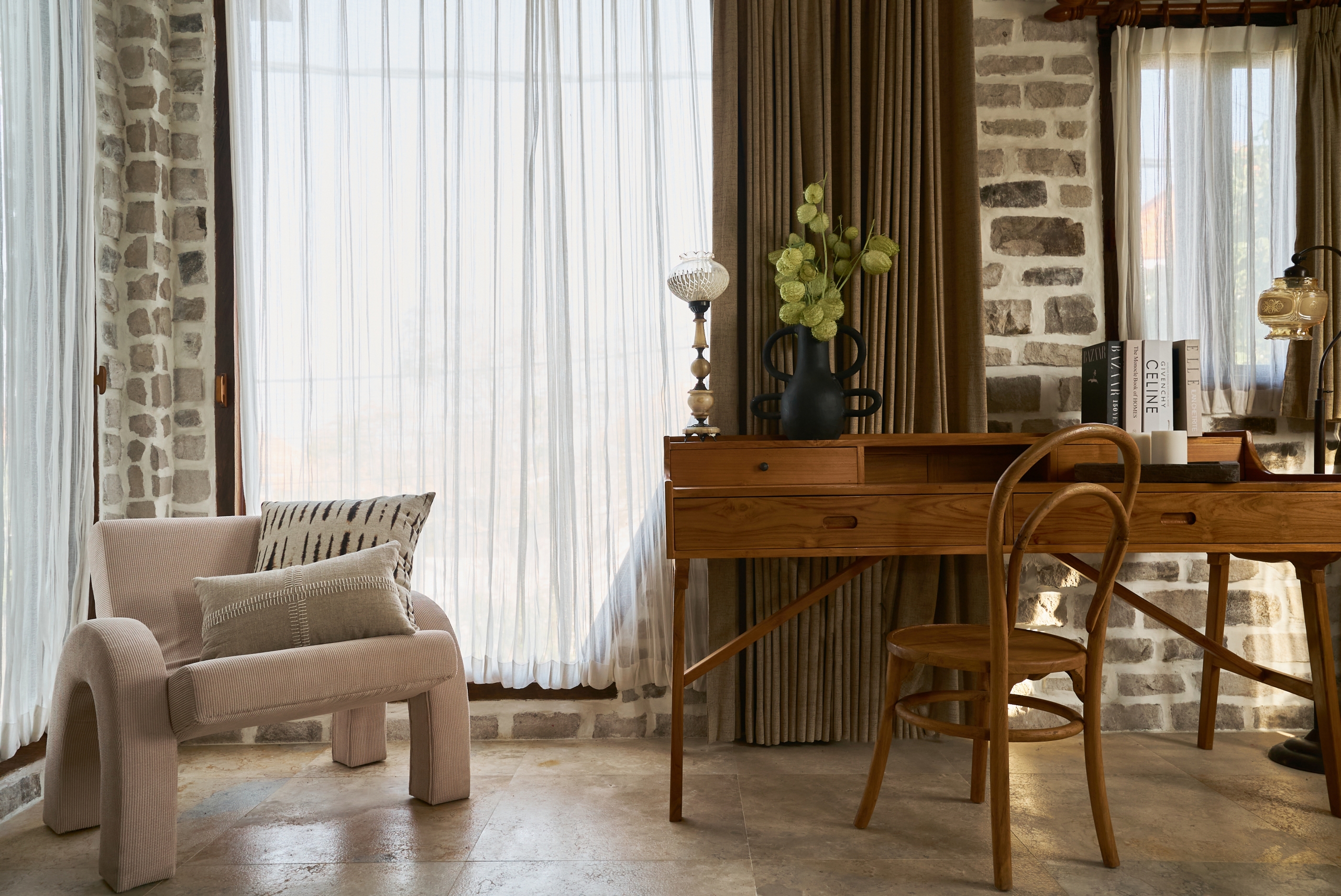 Lavish 3-bedroom Villa with Stone Walls in Pererenan, Bali For Lease