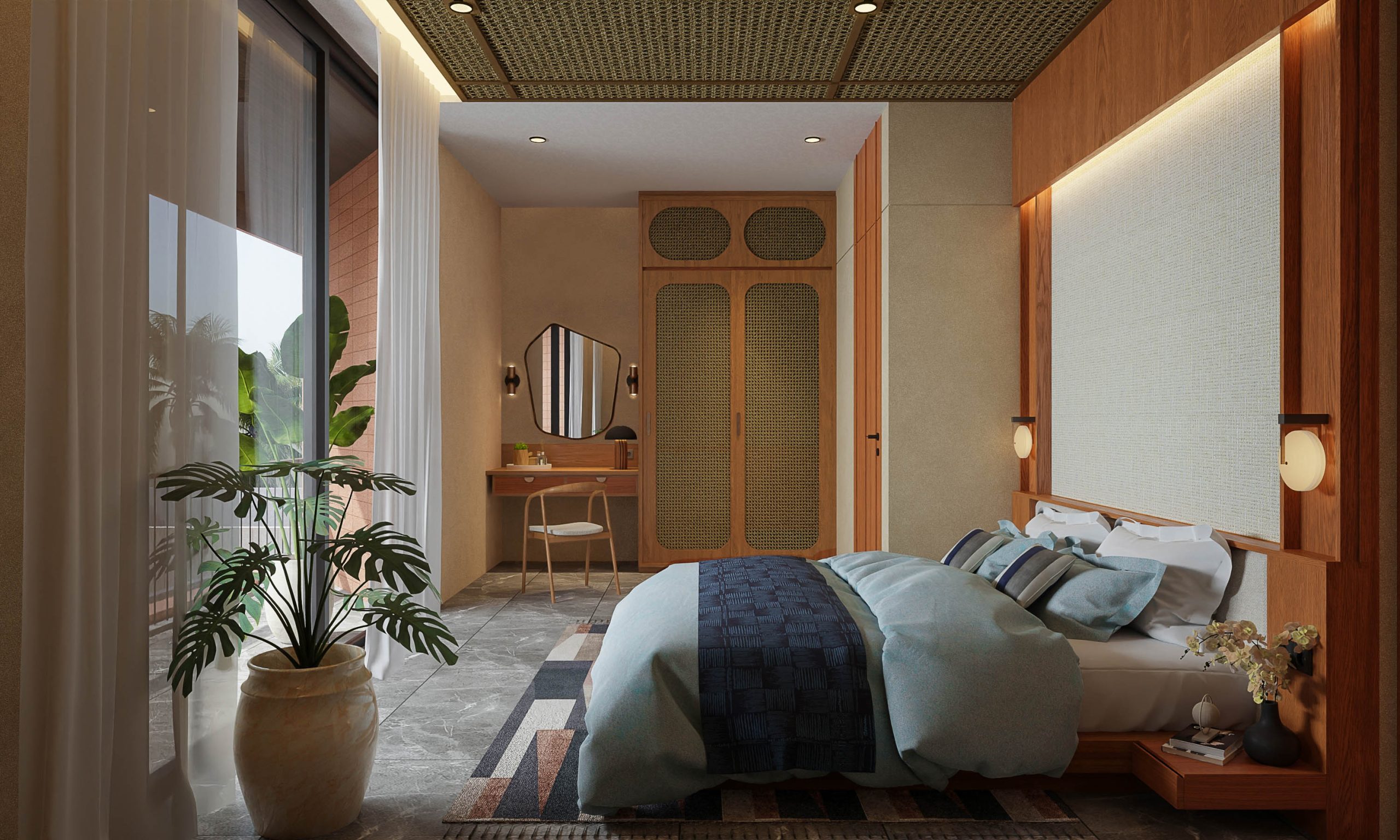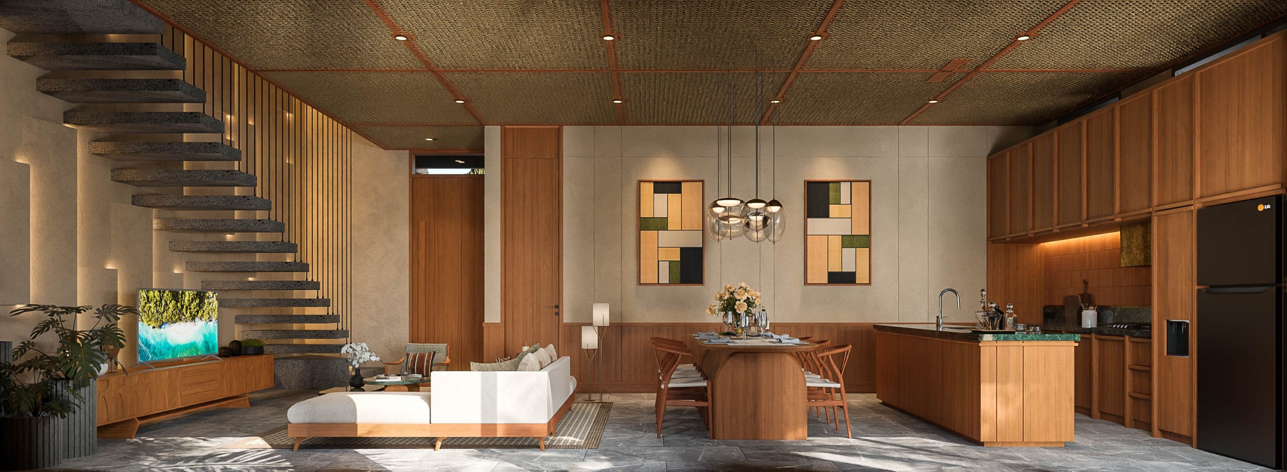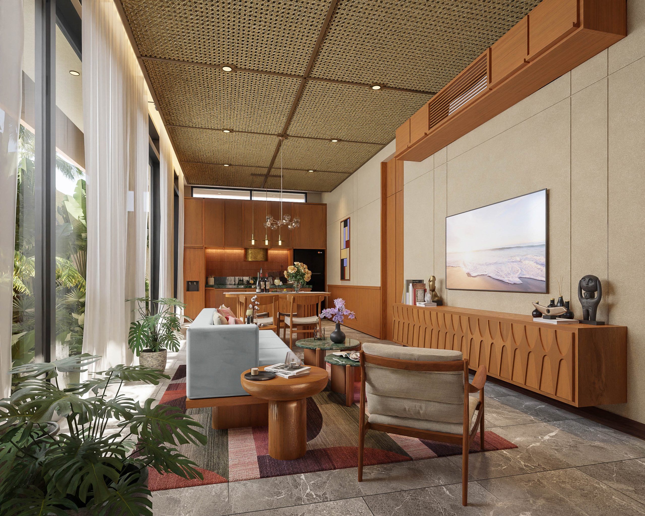 With beautifully designed living and dining areas, elegantly decorated with wood, marble, and stone, and a fully furnished kitchen. This stunning property offers a choice of four different villa types, ranging from 2 to 3 bedrooms: