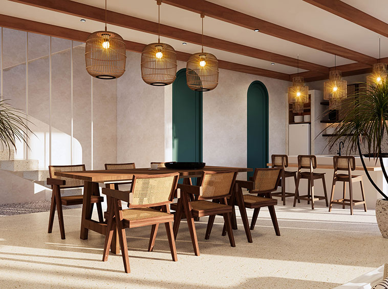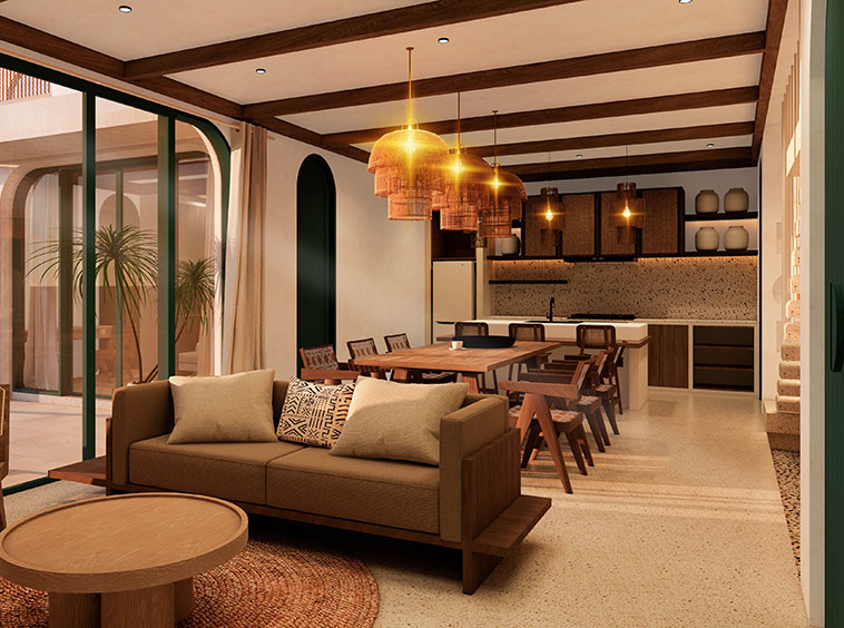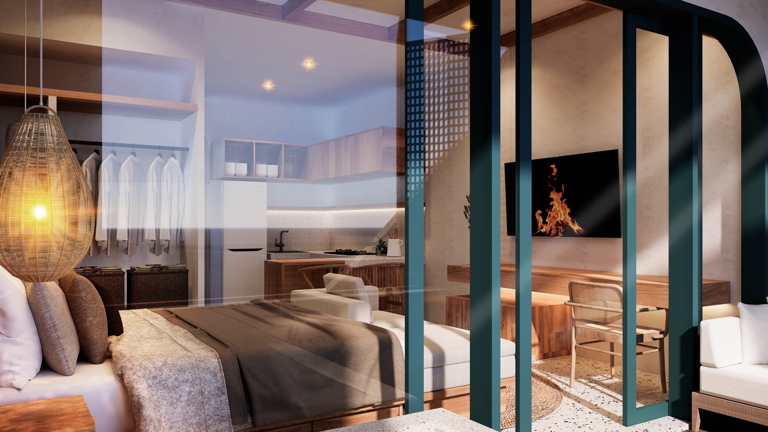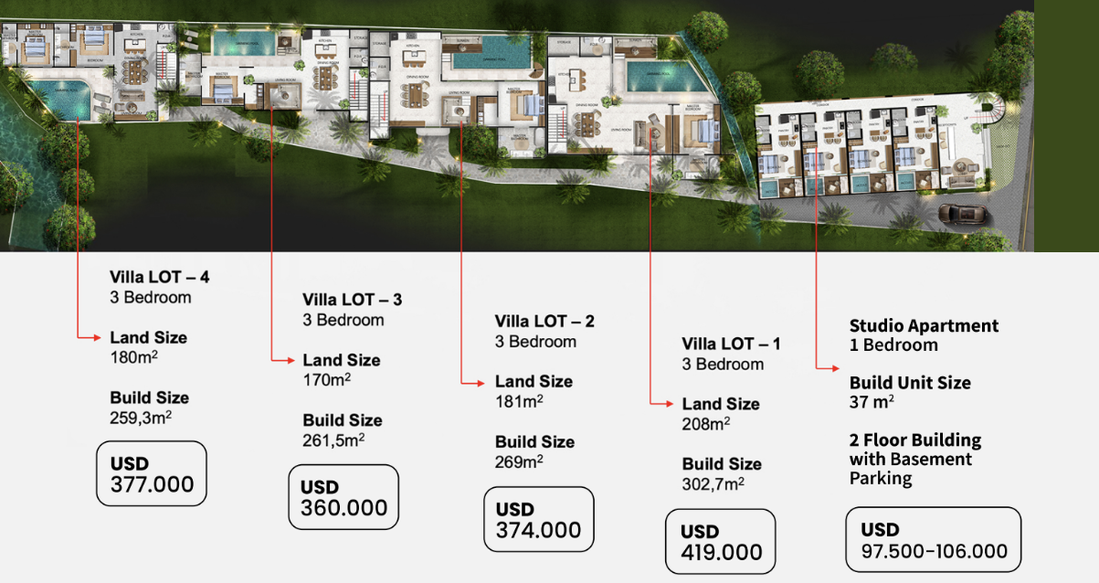 Inspired by the spirit of Balinese culture, this private villa complex is home to four modern and luxurious 3-bedroom Mediterranean-style villas, built on 1,350 square meters of land in the charming village of Tumbak Bayuh in Pererenan, With plenty of natural light the open floor plan, with kitchen, living and dining areas connected to an enclosed personal courtyard and private pool help to create an inviting Mediterranean-style vibe for those looking for an elegant yet functional living experience. Each villa also has its own private rooftop that includes a BBQ grill and a large seating area with fabulous panoramic views over this picturesque enclave in Canggu. there is also the option of a rooftop jacuzzi* so you never miss another sunset in paradise! ( additional cost applied ),