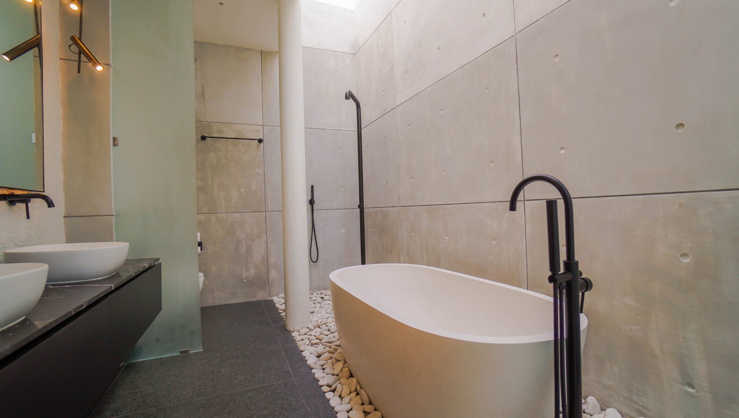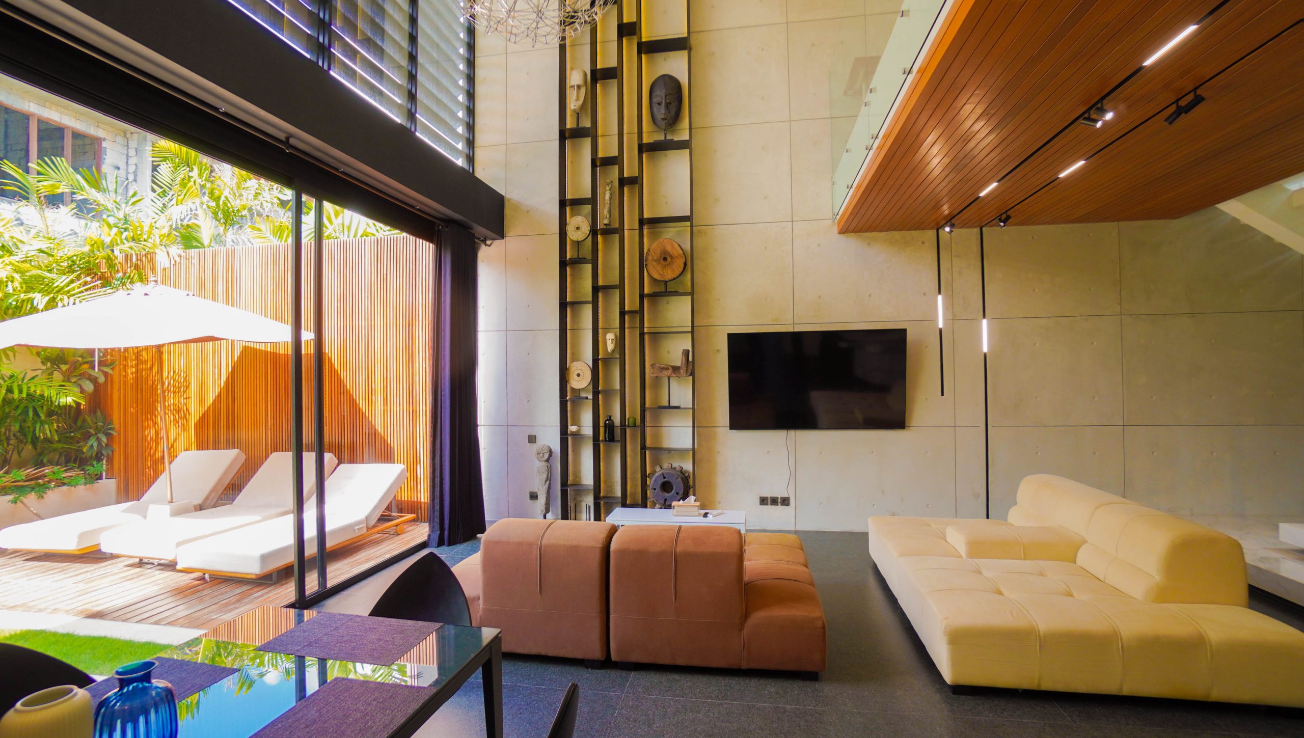 3 Bedroom villa with a modern interior design and high-tech concept, Situated within only 5 minutes drive to Berawa Beach, the two-story villa has a light and futuristic touch, en-suite bathroom in each room, leasehold 25 years left extension possible