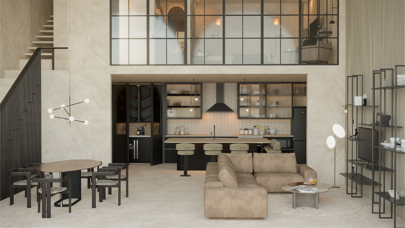 Scuttle yourself in the sleek aesthetics of modern industrial design, where clean lines and contemporary finishes create an atmosphere of sophisticated living. The property boasts a stylish kitchen, marrying form and function to provide a space that is both visually pleasing and ideal for culinary enthusiasts. Dive into relaxation with a refreshing swimming pool, offering a private oasis within the confines of your residence. Enjoy intimate moments or entertain guests on your 45m2 private terrace, a tranquil space that seamlessly connects indoor and outdoor living.