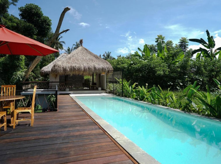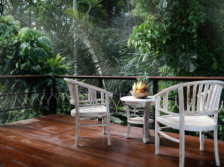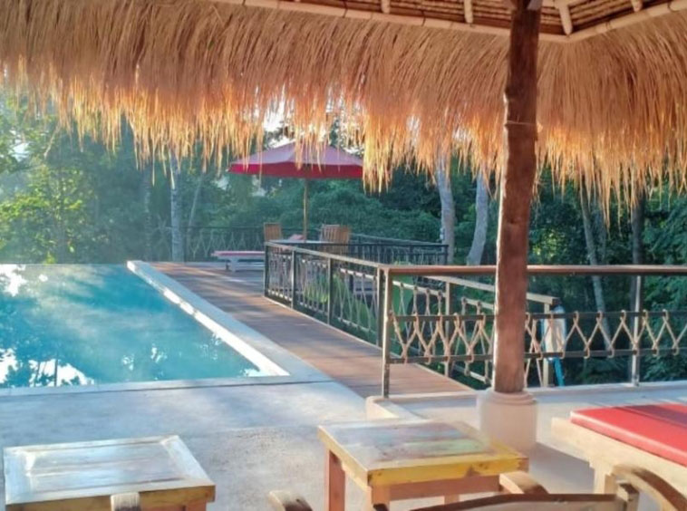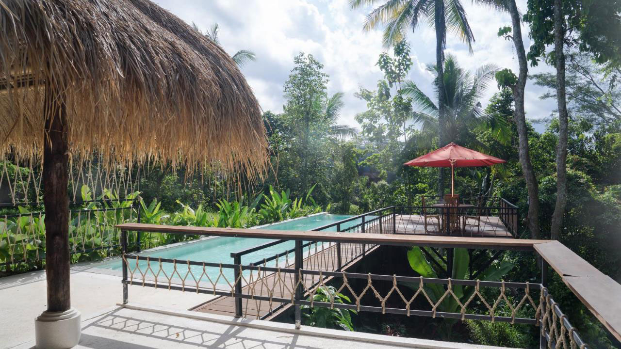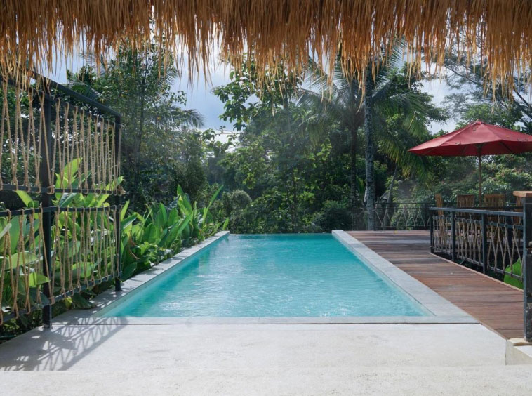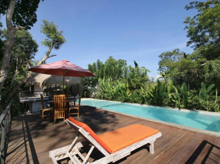 An eco built, comprises of three en-suite bedrooms peacefully embedded into the tropical garden and an infinity pool overlooking the ravine of the mighty Ayung River.