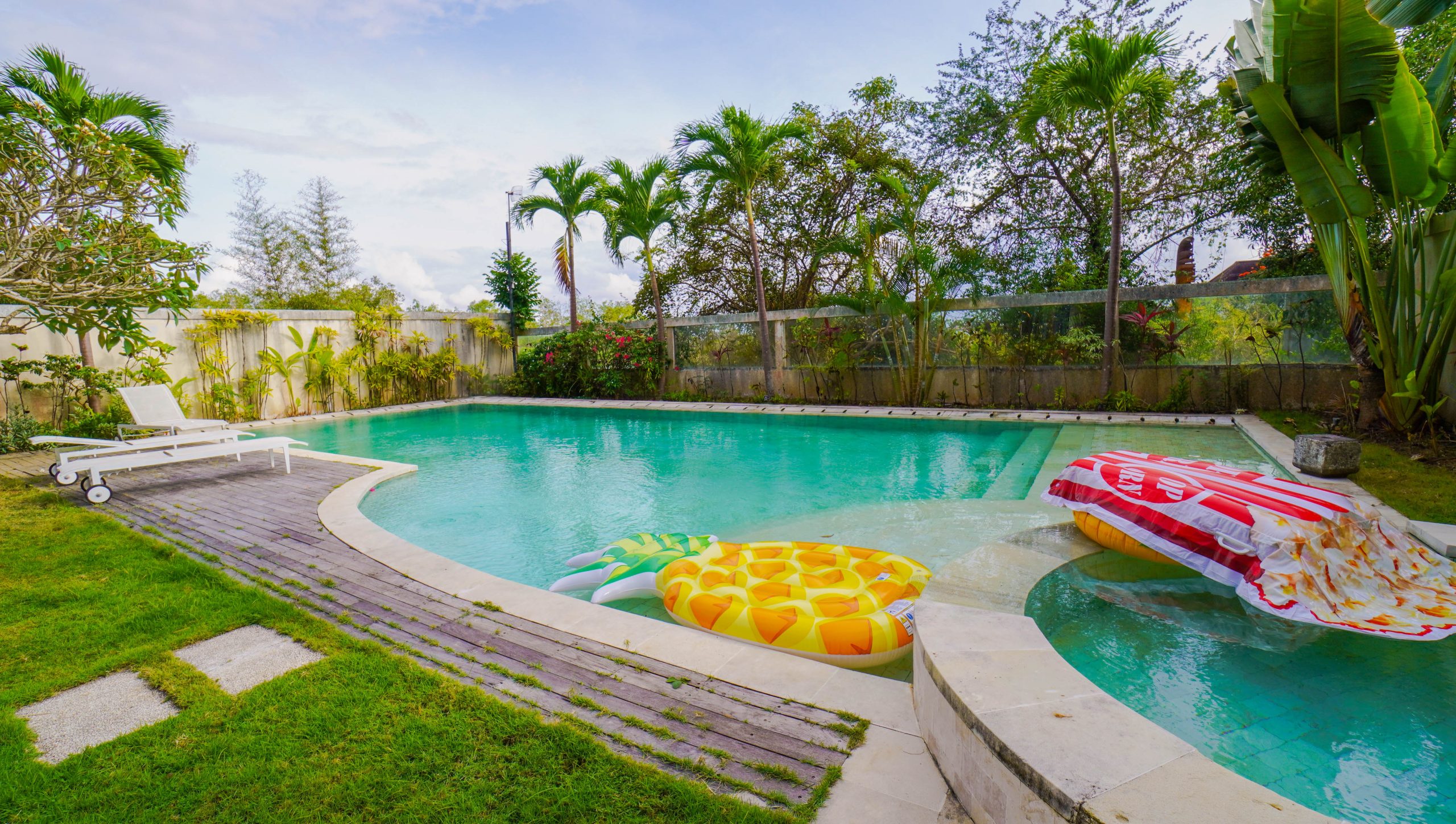 The villa boasts four bedrooms, each accompanied by its own ensuite bathroom, offering privacy and convenience to all occupants. The main bedroom is a true sanctuary, featuring spectacular views of Jimbaran Bay and the Bali mountains. Immerse yourself in these vistas while relaxing in bed or even from the comfort of your bathtub.