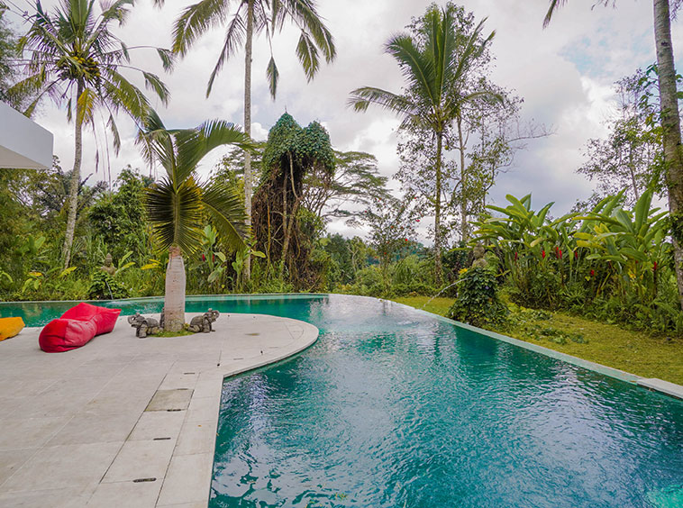 consists of 6 Bedroom, 2 main bedrooms is the second floor with a direct view of the jungle and access to the living area and 4 smaller bedrooms on is first floor has separate access and are not directly connected to the living room, all of the rooms has its private bathroom, the spacious land still have an empty spot you can use if you want to build another building, and this freehold villa comes fully furnished and open for price negotiation