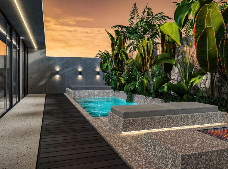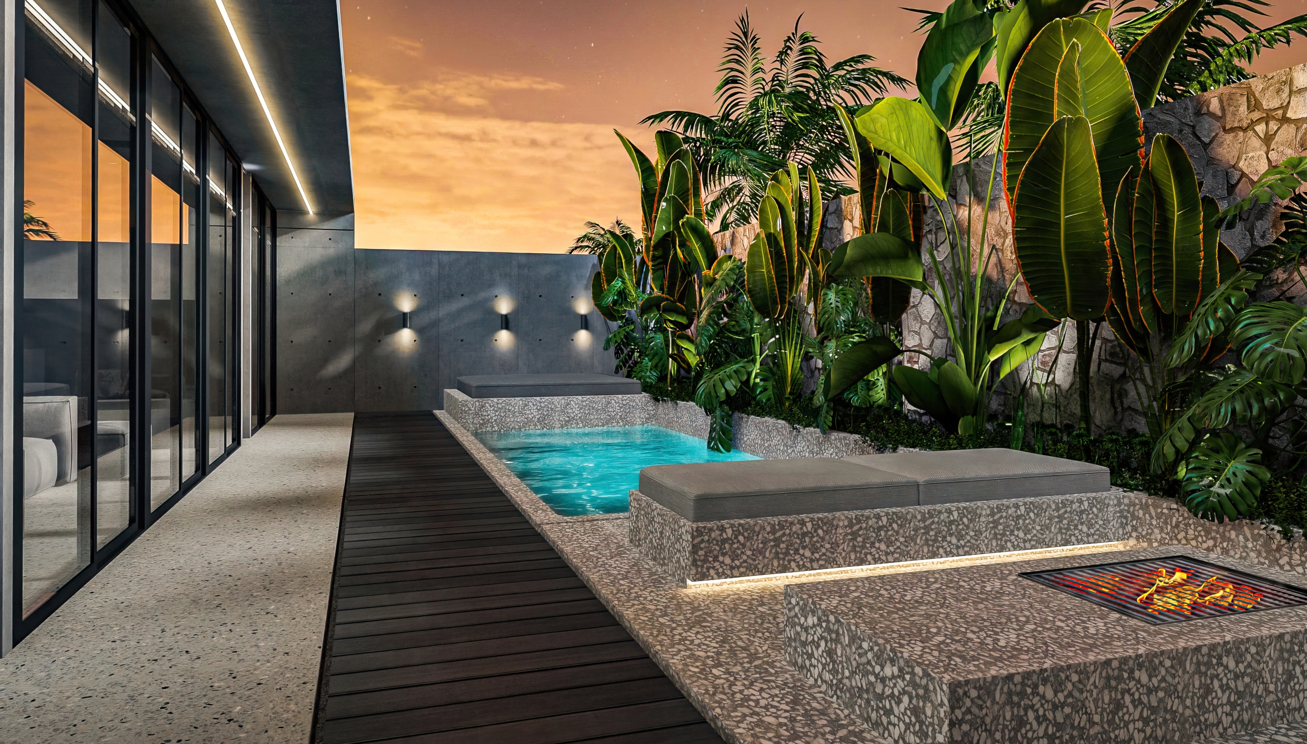 The outdoor section offers a large swimming pool for refreshing and enjoying the tropical vibes of the area. Attached to it, is a broad open-air sitting that is adjacent to a cheerful grilling section. Additionally, this villa also provides a spacious patio that is ideal for family gatherings or celebrations.