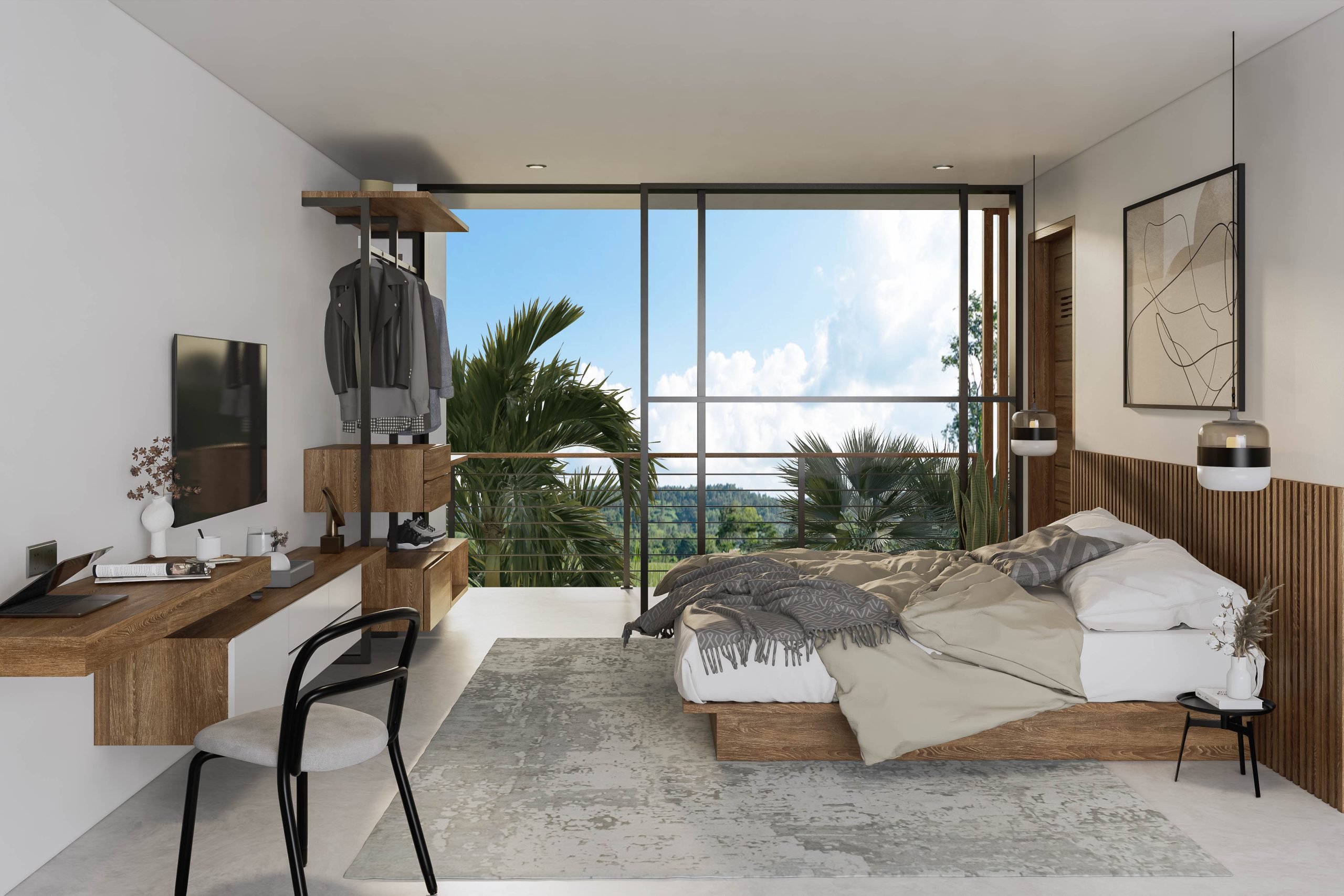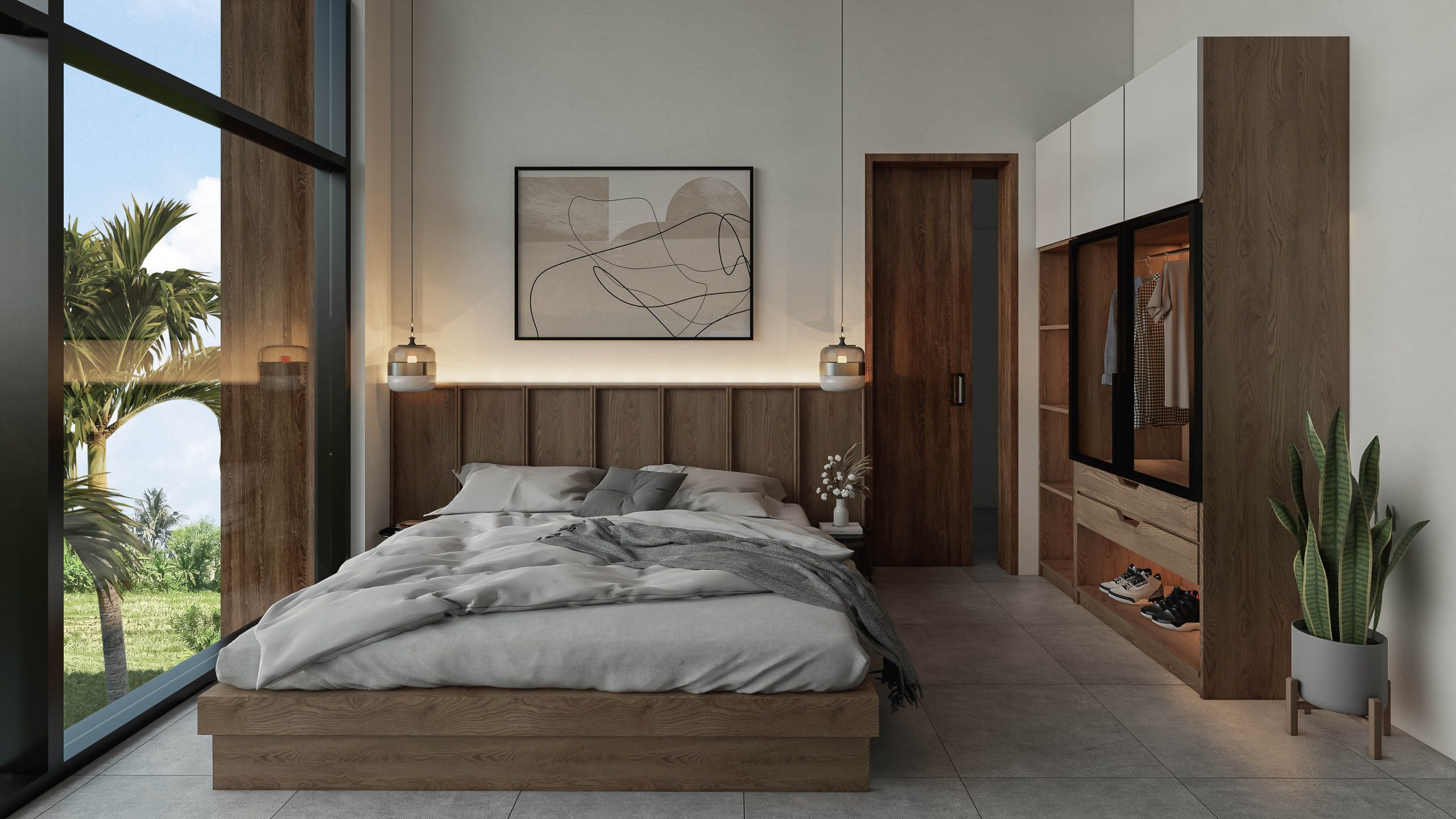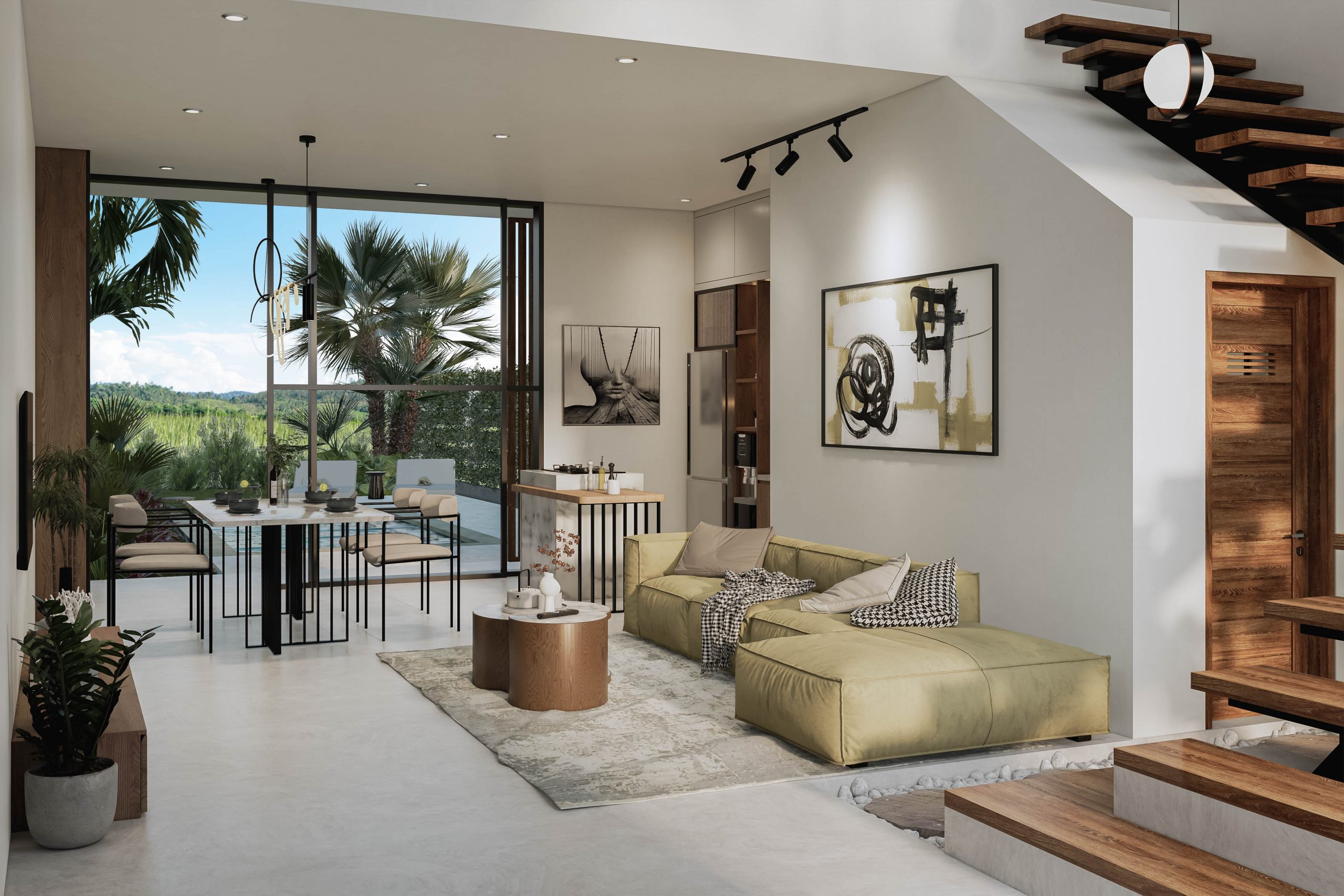 Located in Buwit, in the middle of the Tabanan rice fields, 15min from hip and trendy Canggu, only 10 minutes away from Tanah Lot, the Nyanyi beach and Pererenan. Serene and tranquil, this stunning loft situated on a 150 sqm of land, offers breathtaking views of the lush green rice fields that surround it.