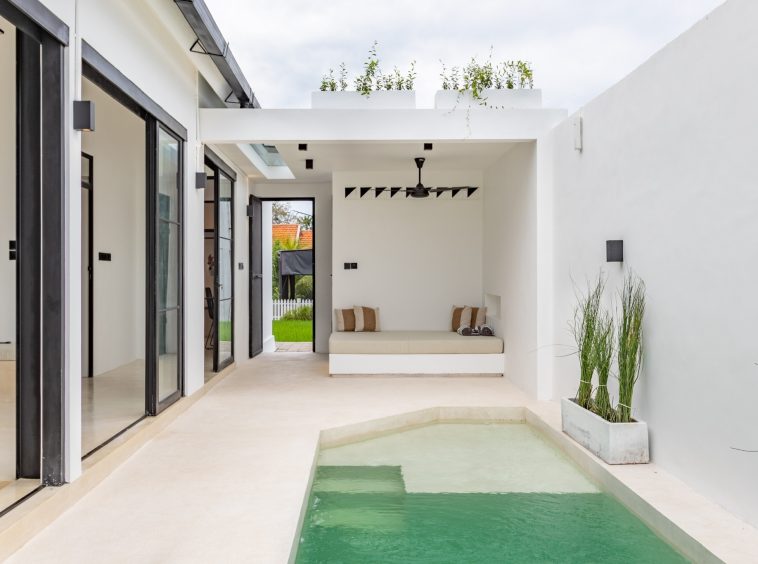 Brand New Villa located in Pererenan area. The villa consists of 3 units and is built on 110sqm of land with a building area of 58sqm. This is a rare opportunity to have a villa located minutes away from the trendy restaurants and shops of Pererenan area. Beach in less than 5 minutes ride. The villa is comes fully furnished an equipped, with swimming pool, a very comfortable sunken lounge, an open/close living room connected to the kitchen area which gives the impression that this one bedroom villa looks spacious. The location is also far from the noise of the main road, perfect for relaxing after a very busy day. This villa will be completed in6-7 weeks and one of the unit has already been sold. Grab a good deal now don’t wait for later.