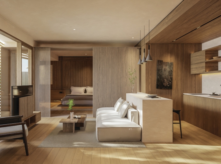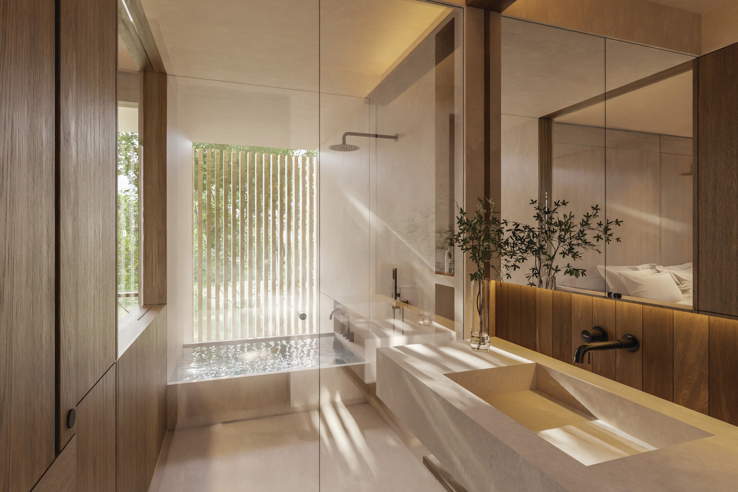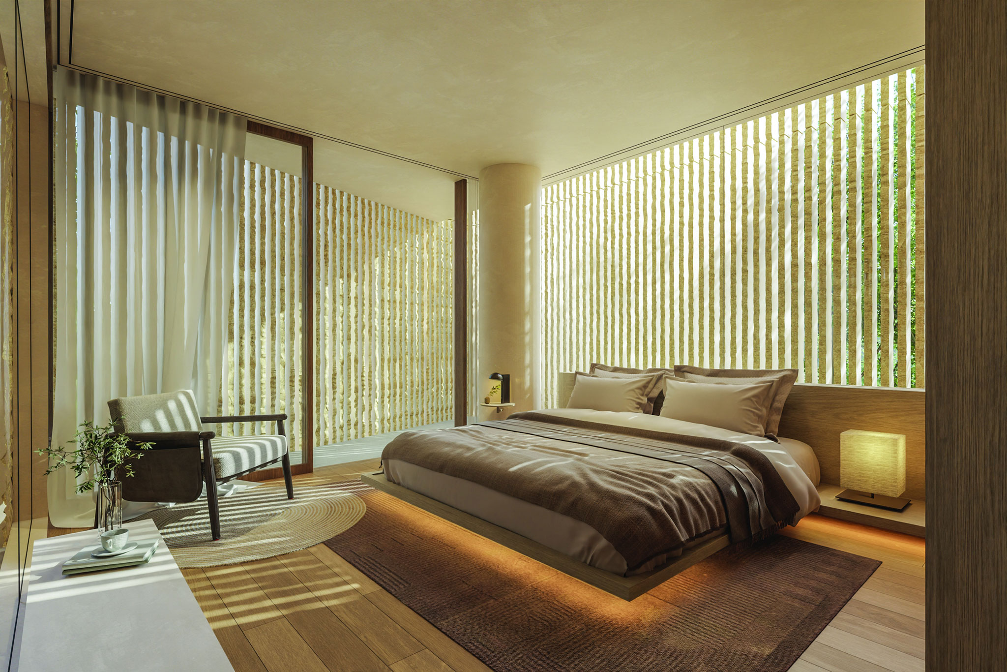 Each suite is meticulously designed with elegant tropical accents and provides a generous 59 to 103 sqm living area with 1 and 2 bedroom options. The interior also features an ensuite bathroom, a spacious living room, a fully equipped pantry, and an enlarged private balcony. Additionally, it is installed with floor-to-ceiling glass and biophilic lighting that elevates every section of the apartment.