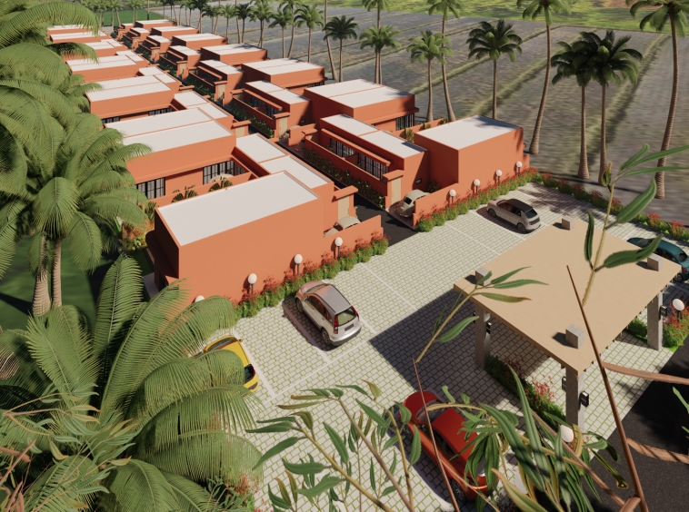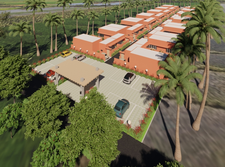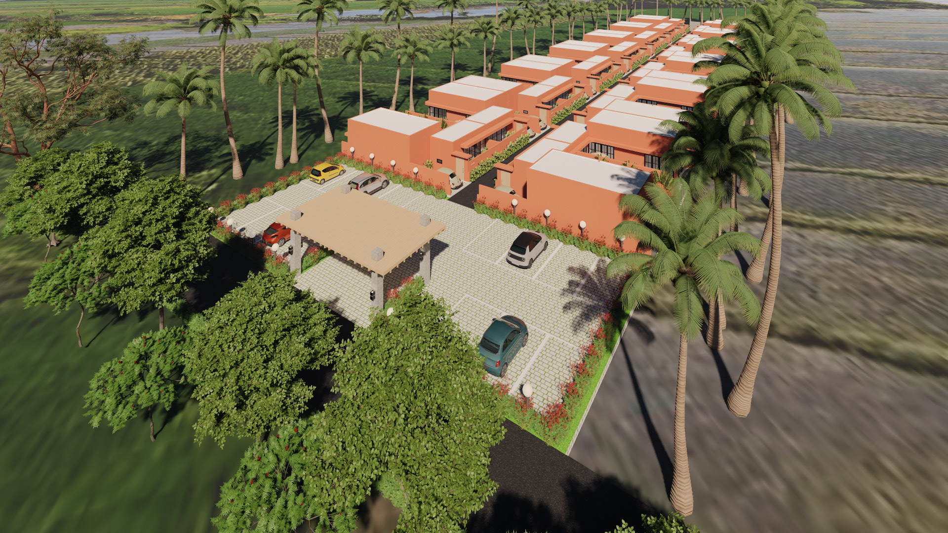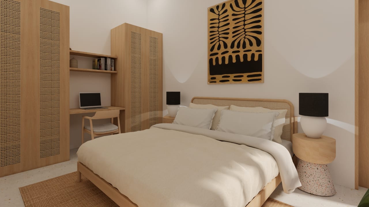 Built on 142 sqm of land with 62 sqm of living area, this stylish villa boasts its thoughtful 1-story layout with a modern and minimalist finish enclosed by its characterful exterior. It features 2 spacious bedrooms, each with a full bathroom and an item of wardrobe-desk furniture, a comfortable living room, a sleek kitchen, a dining area, and a dedicated pantry room.
