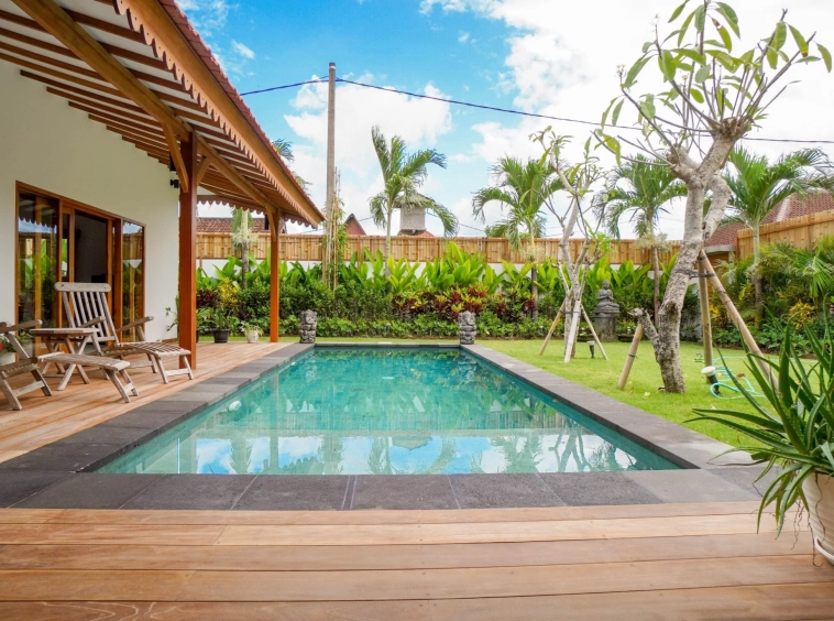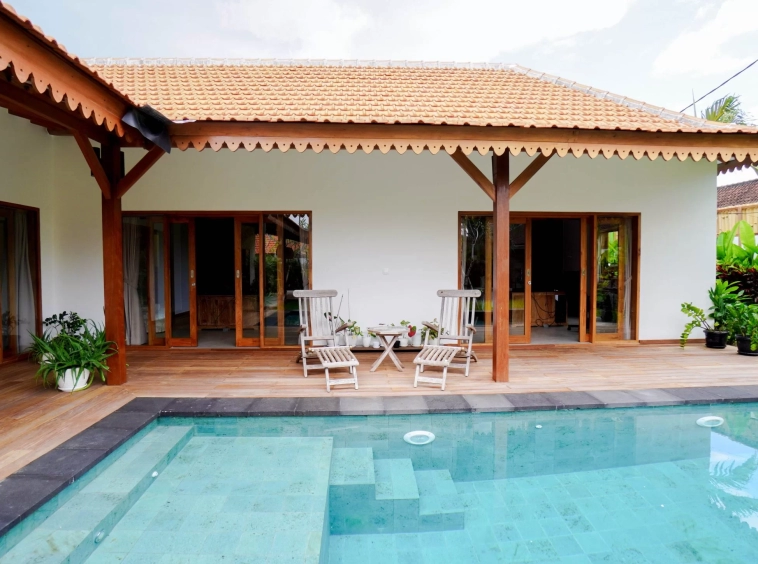 This villa features a beautiful 9 x 3 pool and a wooden deck, making it an ideal place for relaxing or hosting family and friends. The total area of the house is 181 square meters, with an additional 71 square meters of terrace space, providing ample space for entertainment and relaxation.