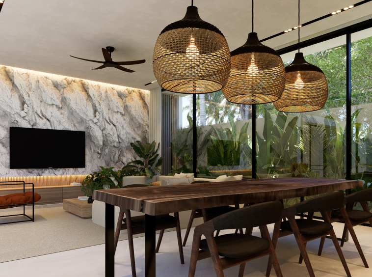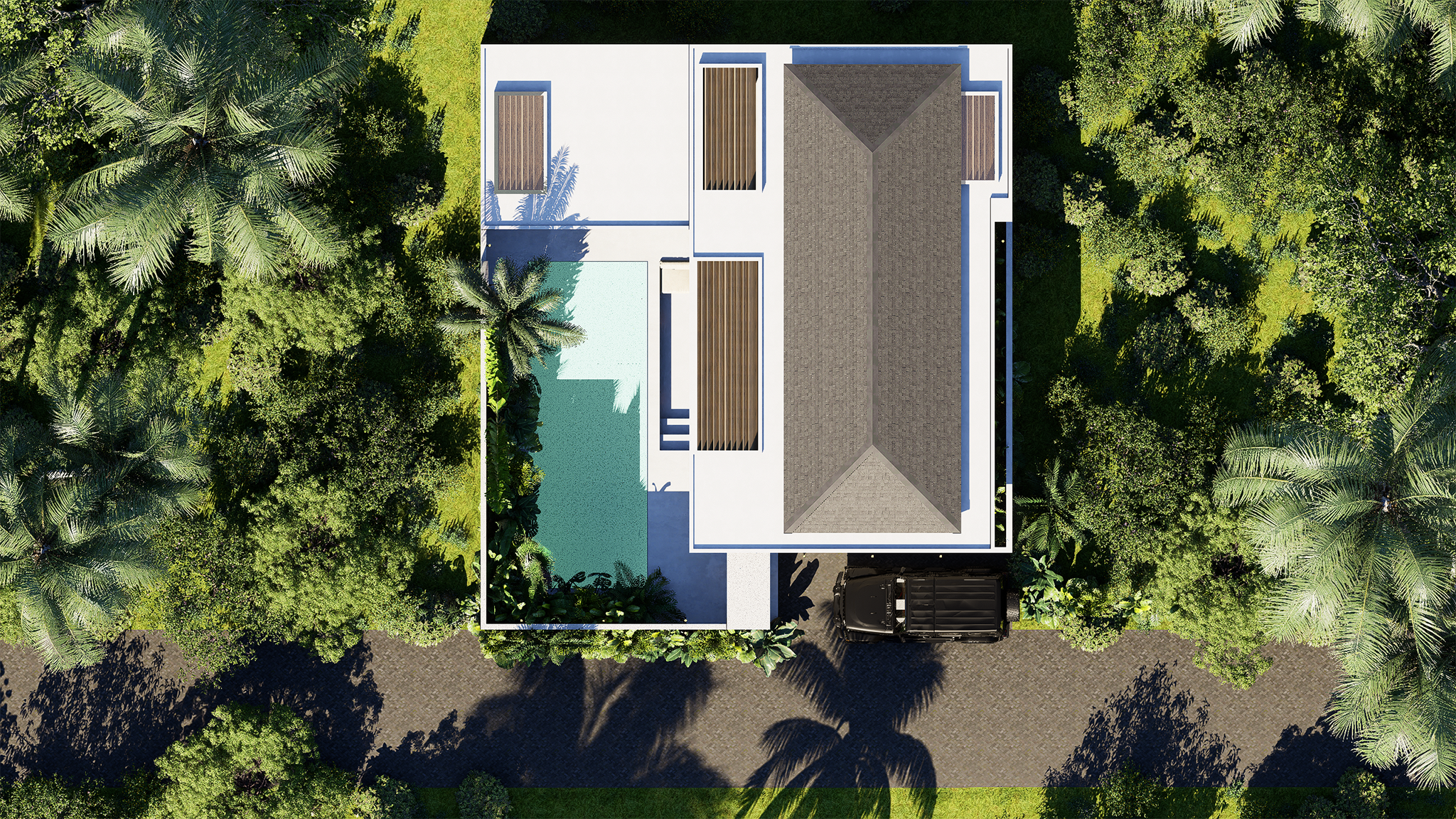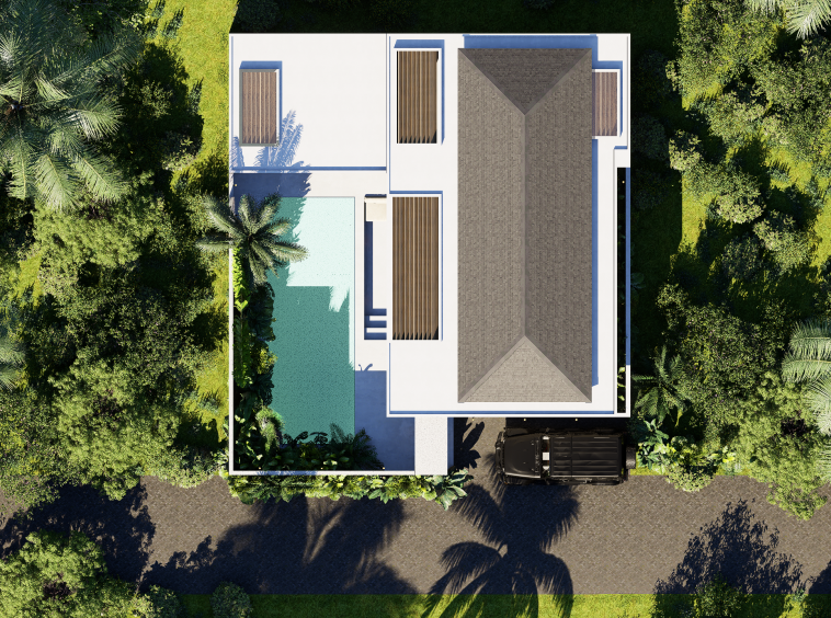 The villa features a fully-equipped kitchen where you can channel your inner chef and whip up delicious meals using fresh local ingredients. Adjacent to the kitchen is the inviting dining room, where you can enjoy your culinary creations with friends and family in full comfort. Escape the tropical heat with a refreshing dip in the sparkling swimming pool surrounded by the garden. Whether you’re lounging poolside with a good book or taking a refreshing swim, the pool area offers the perfect retreat from the hustle and bustle of everyday life.