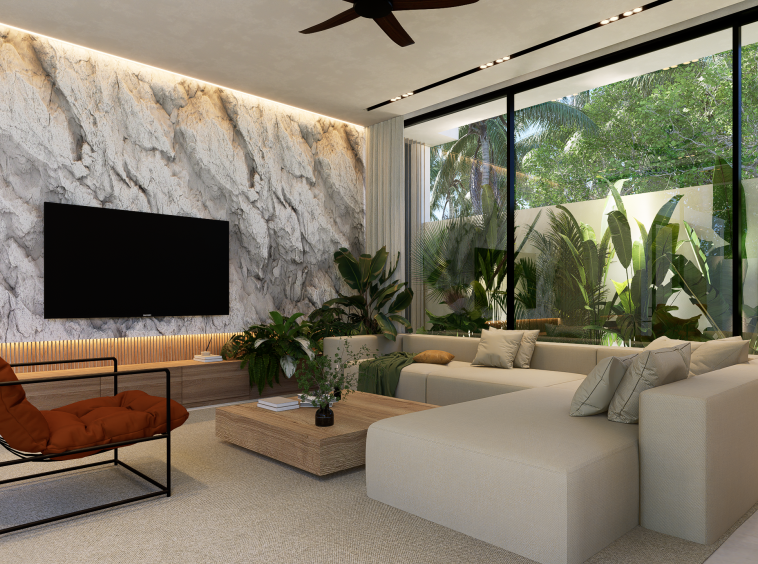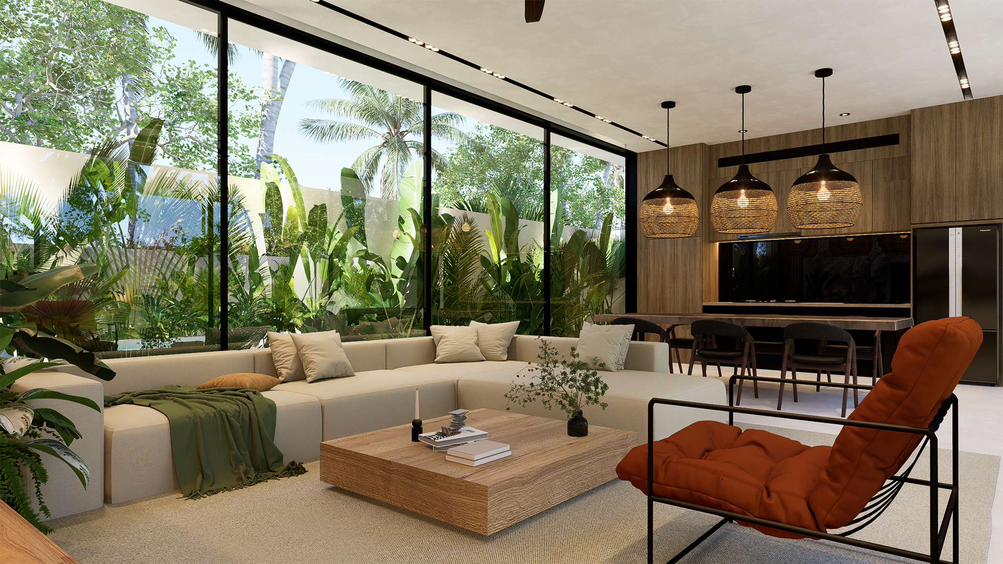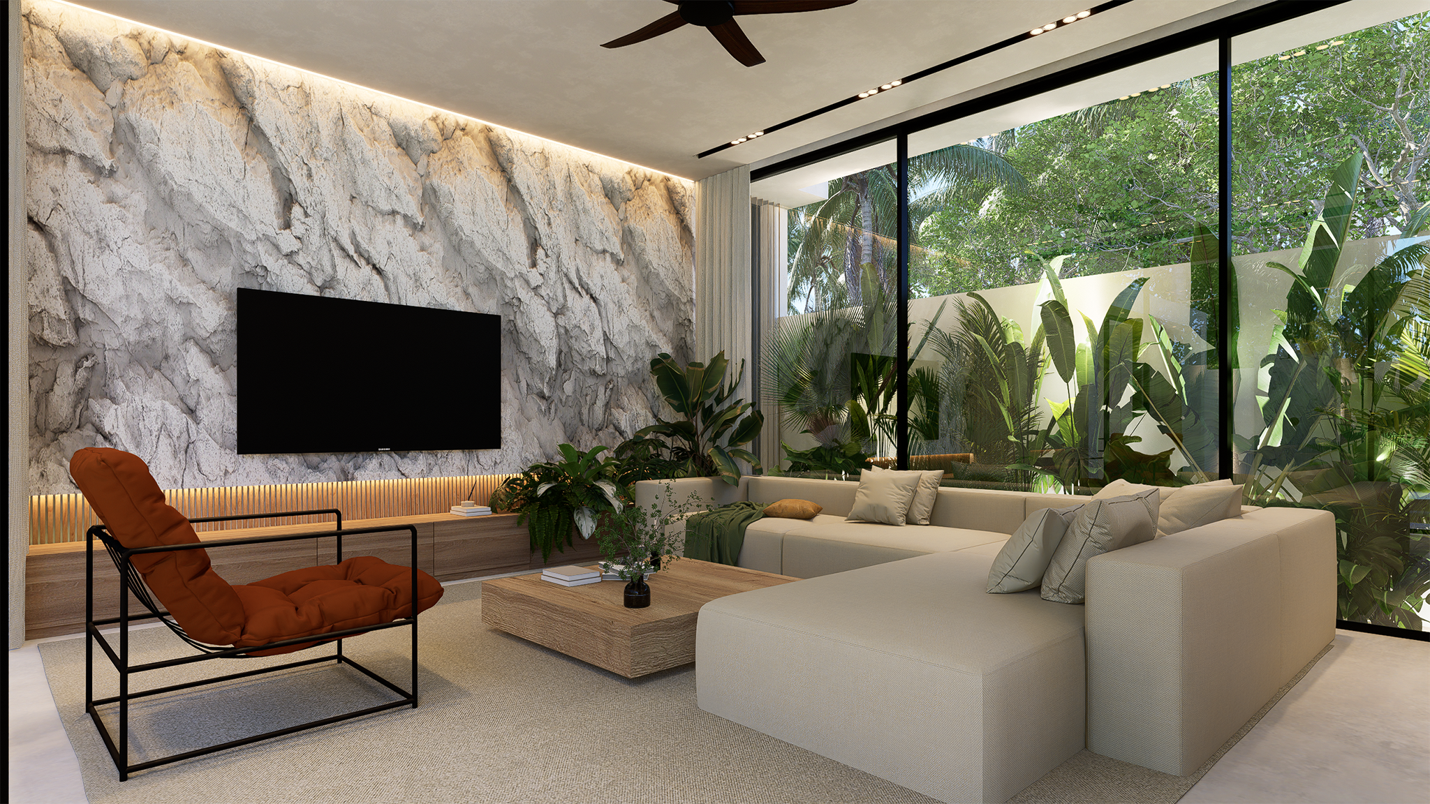 Upon entering, you are greeted by a lush tropical garden and a serene ambiance that sets the tone for relaxation. Step into the spacious living room adorned with tasteful furnishings and decor, perfect for unwinding after a long day of exploring the island. The sunken lounge area adds a touch of elegance and provides a cozy space for intimate gatherings or quiet moments.