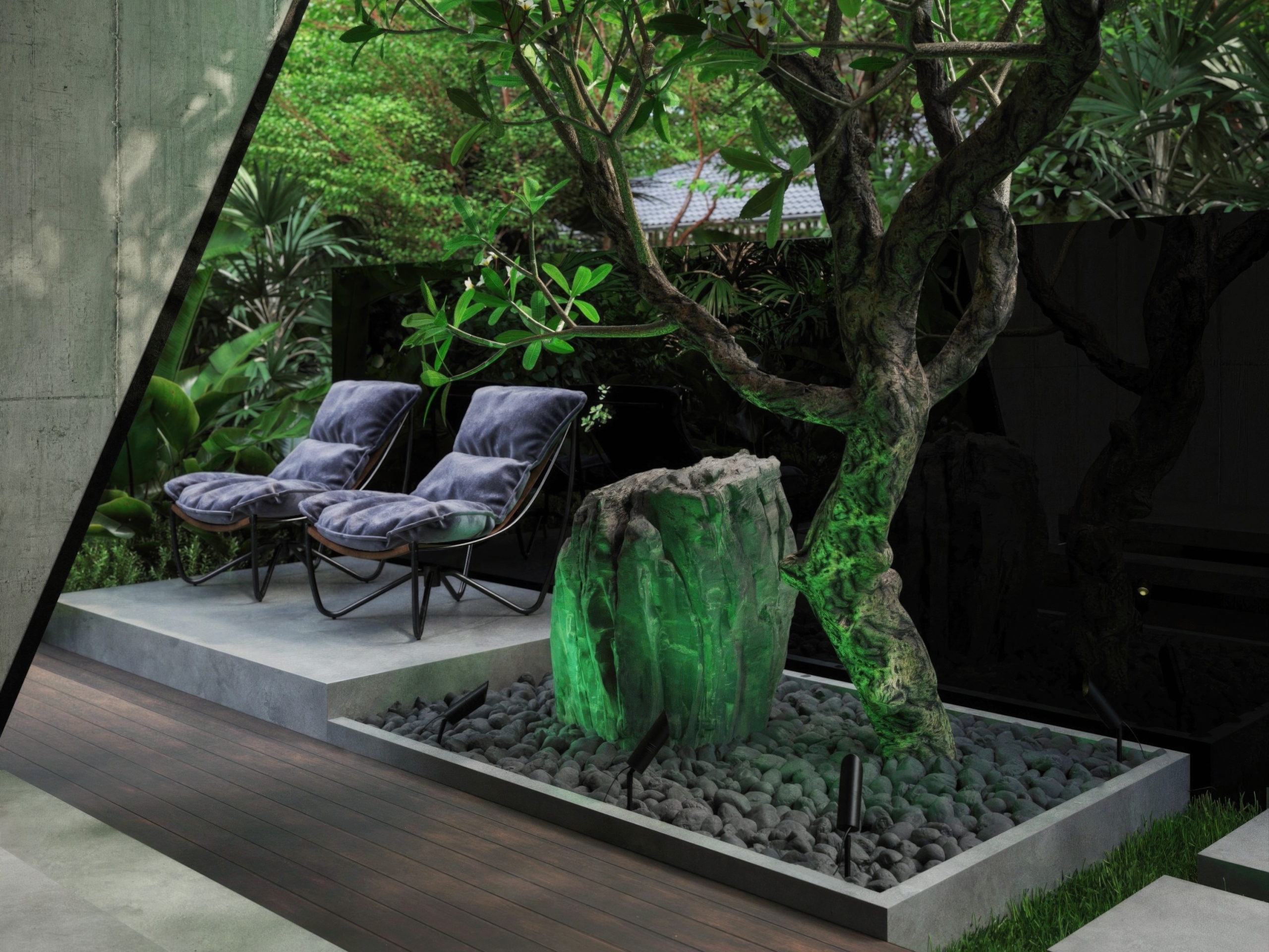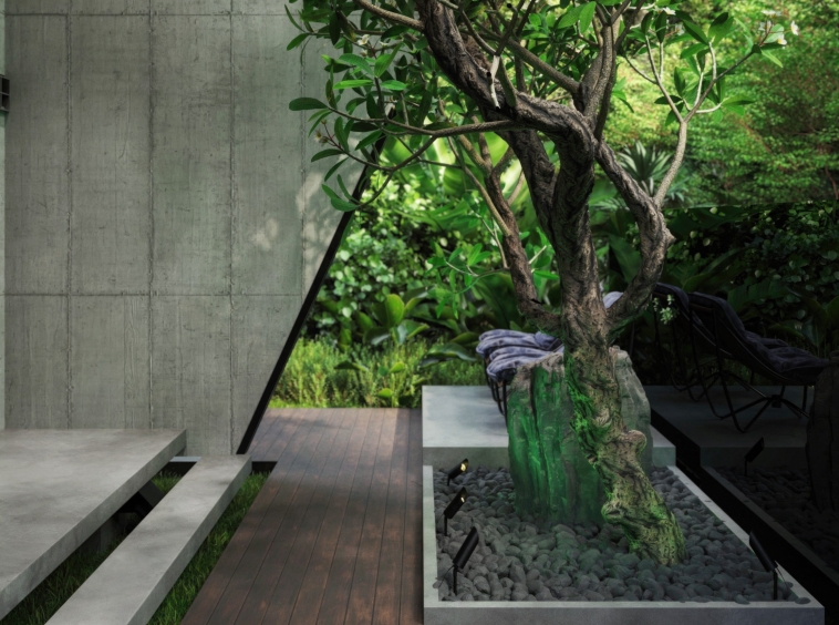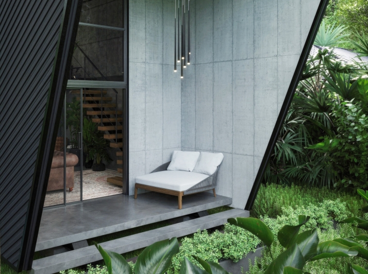 Built on 100 sqm of land, this uniquely designed loft-style villa offers 40 sqm of living area with a 2-story layout. The ground floor features a spacious living room with fancy seating and a TV set, a modern-equipped kitchen, a dining space, and a full bathroom. The second floor features a mezzanine bedroom with a modern nuance and a study/working desk. Both floors are finished with a modern and contemporary feel and are connected by a flying timber stair.