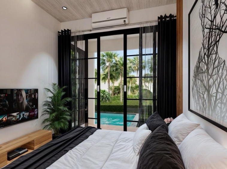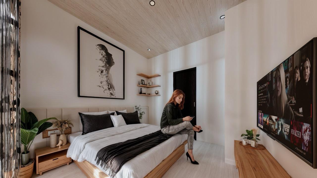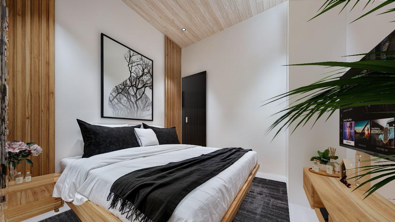 The outdoor section boasts a large and surrounding tropical garden, a lovely private swimming pool, and a pool deck. In addition, this villa provides an open parking space that fits 2 cars and a few bikes, making it a perfect home for a family or groups of young nomads.