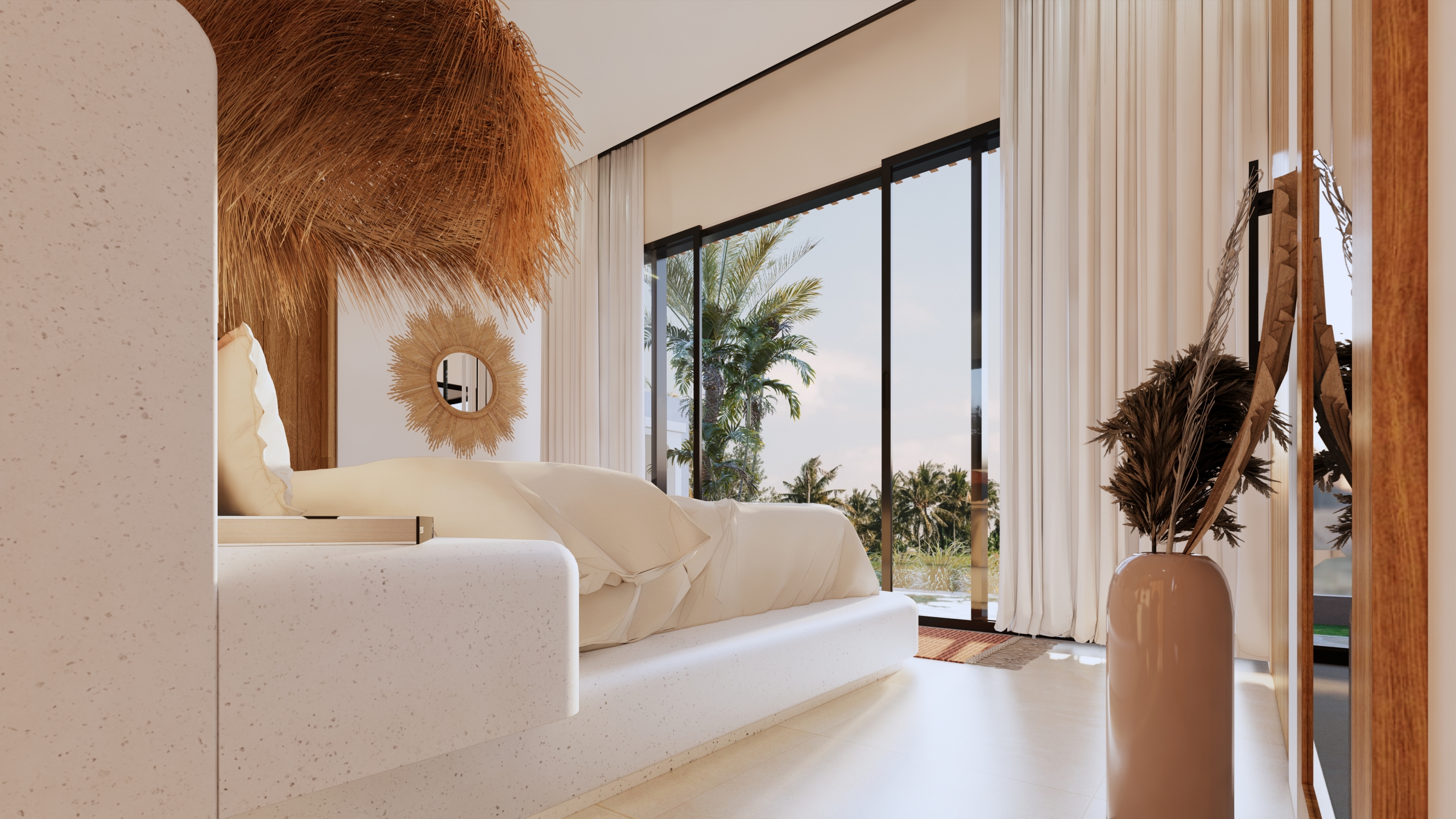Introducing the modern oasis in the serene village of Cemagi, Bali. This stunning villa is a harmonious blend of contemporary luxury and tropical charm, offering the perfect retreat for those seeking tranquility amidst breathtaking natural surroundings in Bali. Featuring 1 master bedroom and a mezzanine with 2 additional beds, this residence is designed to accommodate families or small groups in comfort and style. With 1 master bathroom and 1 common bathroom, a spacious living room, and a well-appointed kitchen, every detail of this home has been thoughtfully curated for modern living.