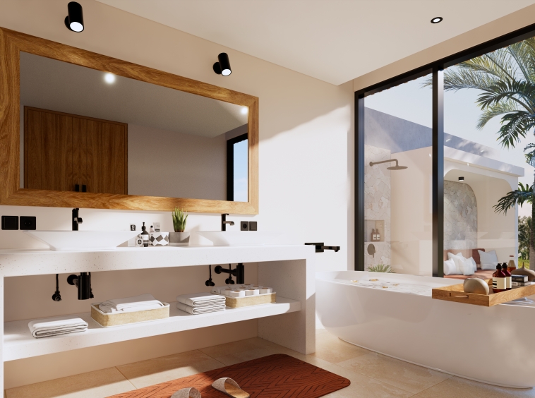 Indulge in the ultimate relaxation as you step outside to discover your private oasis, complete with a sparkling swimming pool and verdant garden as well as a private pergola. Whether you’re soaking up the sun by the poolside, enjoying a meal under the shade of swaying palm trees, or simply unwinding amidst the tranquil surroundings, every moment here is a blissful escape. Inside, the property boasts a modern and luxurious design, with a spacious living room, a fully equipped kitchen, and thoughtfully appointed amenities throughout. From modern finishes to stylish furnishings, every detail has been carefully considered above 160 m2 of land.