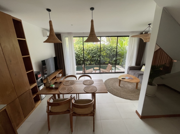 Step into luxury living with this stunning leasehold villa nestled in the vibrant heart of Umalas, Kerobokan, Bali. Designed in a contemporary townhouse style, this exquisite residence features 2 bedrooms with 2 bathrooms, offering the perfect blend of comfort and sophistication.